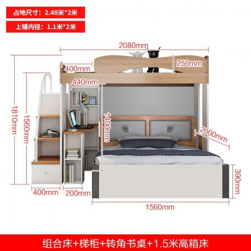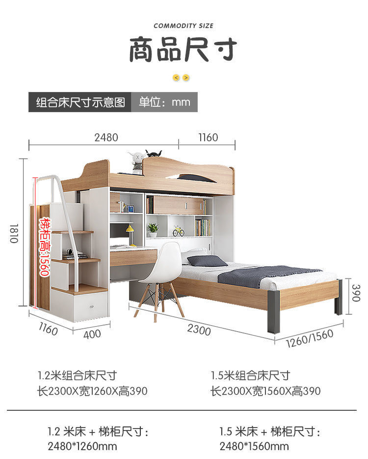 • 콤비네이션 침대 + 사다리 캐비닛 + 1.5m 하이 박스 침대