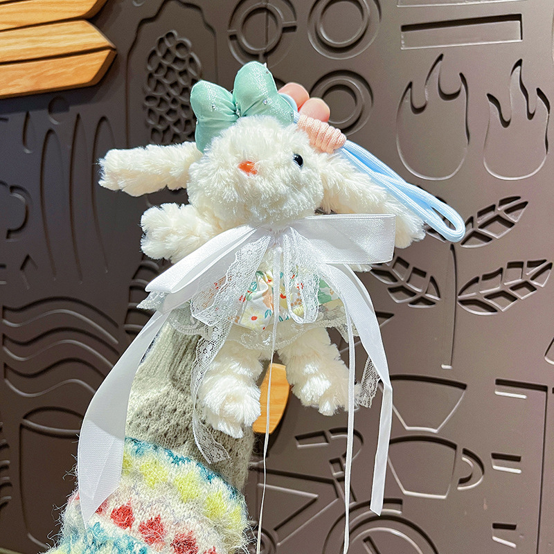 • 봉제 공주 드레스 긴 귀 토끼-블루 리본 (소형)