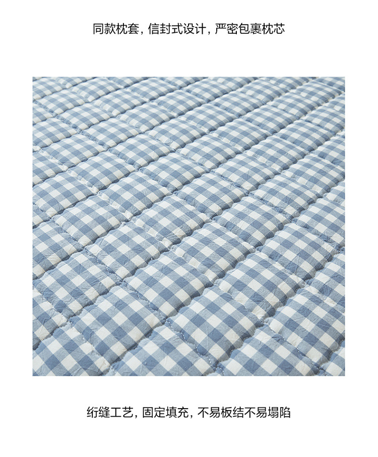 • 블루 스몰 체크 [면 100% 워싱 코튼 퀼팅]