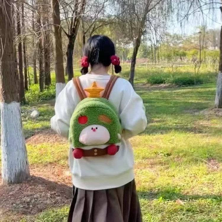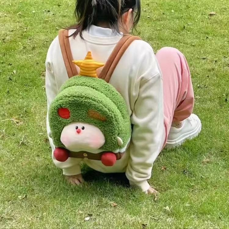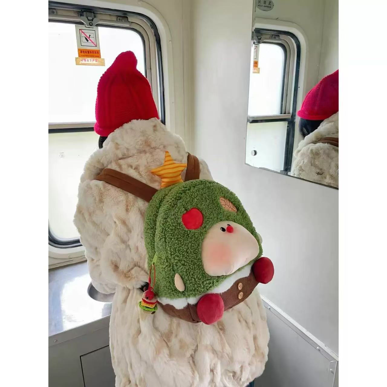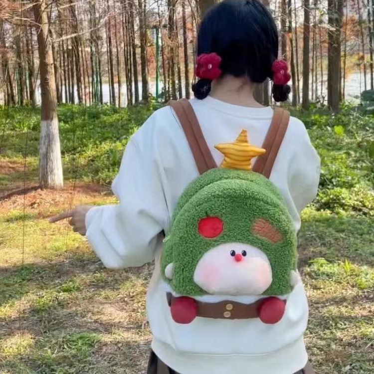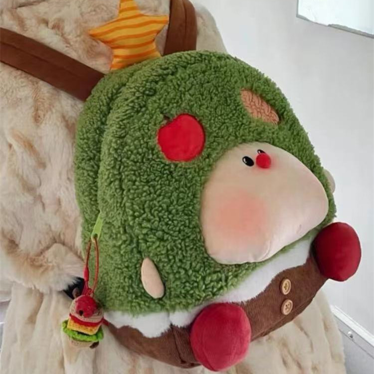 일본식 Ins 애플 트리 귀여운 만화 봉제 배낭 학생 여학생 남학생 경량 배낭 재미 있는 여성용 가방스토어 가기