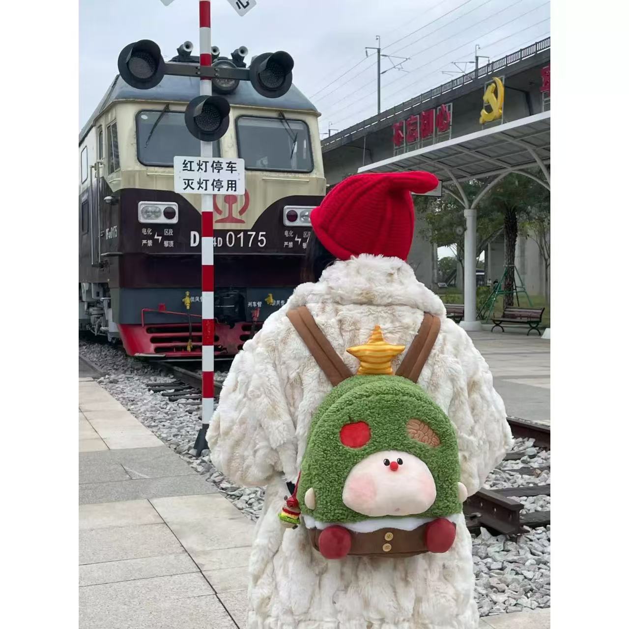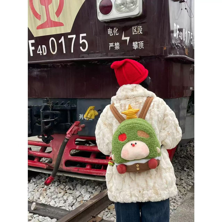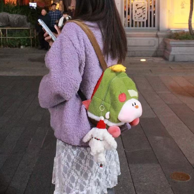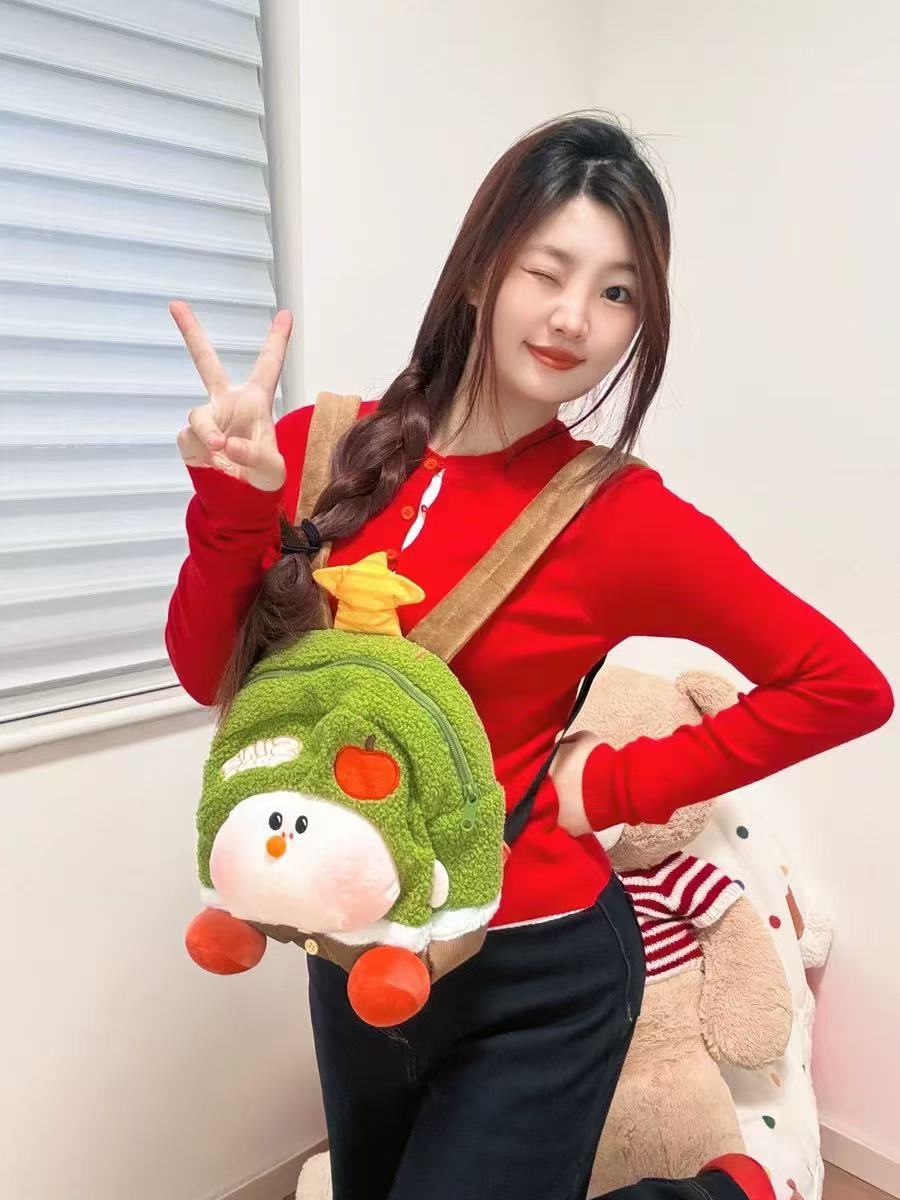 일본식 Ins 애플 트리 귀여운 만화 봉제 배낭 학생 여학생 남학생 경량 배낭 재미 있는 여성용 가방스토어 가기