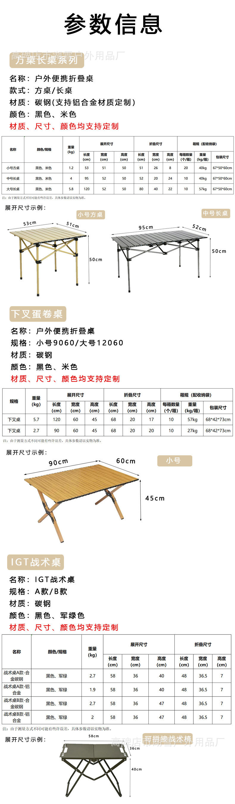 야외 캠핑 접이식 테이블 스톨 휴대용 알루미늄 합금 계란 롤 테이블 캠핑 바베큐 피크닉 테이블 알루미늄 합금 테이블스토어 가기
