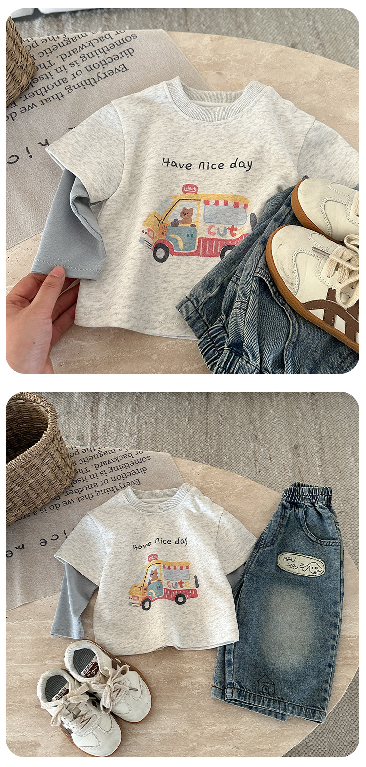 아동복 가을 의류 2025 새로운 만화 유아 의류 아기 티셔츠 캐주얼 청바지 투피스 세트 카테고리 a