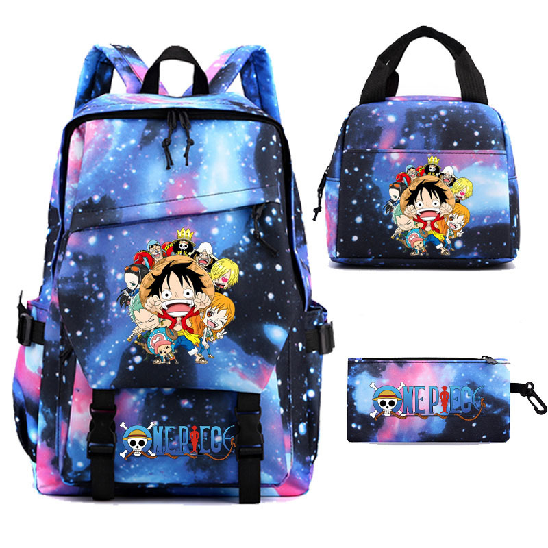 새로운 원피스 루피 학생 스쿨백 3 피스 게임 주변 배낭 대용량 컴퓨터 도시락 연필 케이스스토어 가기