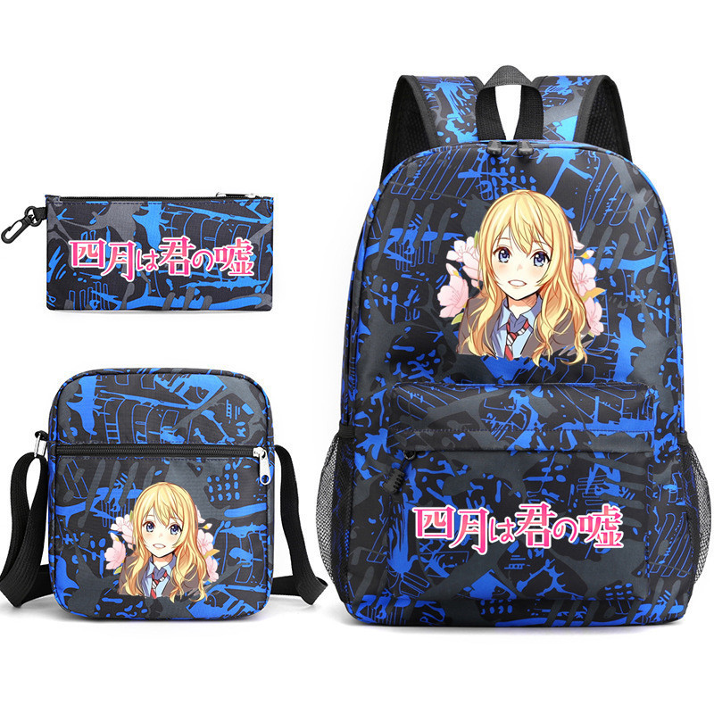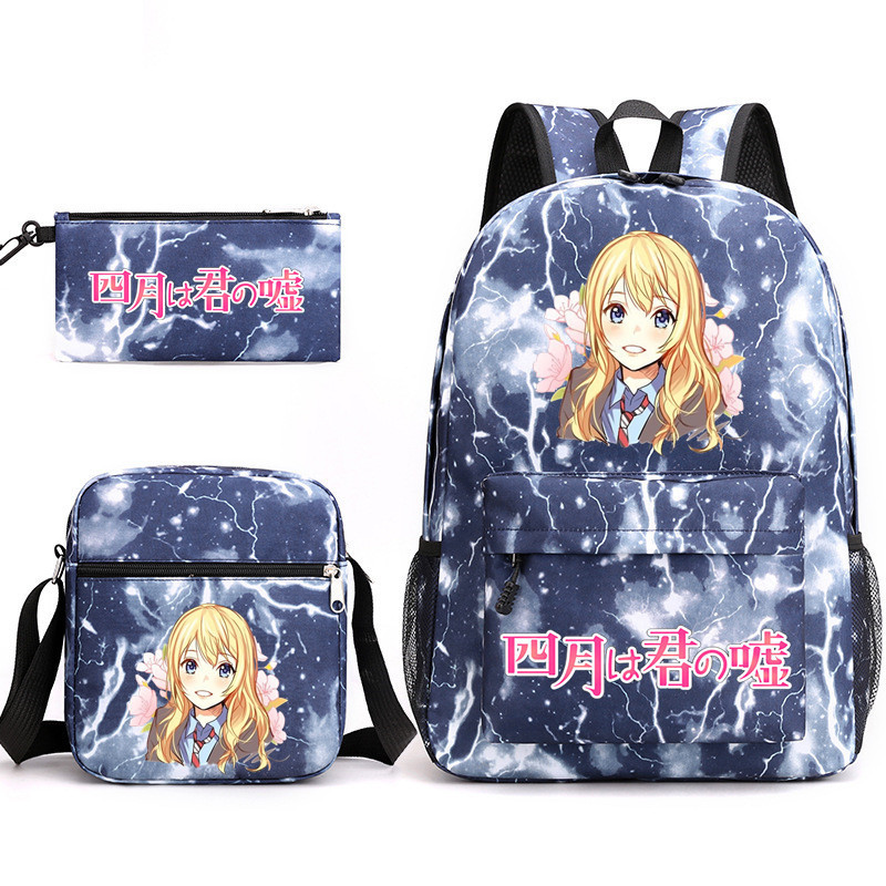 4 월은 세 조각 학교 가방 남학생과 여학생 캠퍼스 연필 케이스 대용량 배낭을 둘러싼 거짓말 애니메이션입니다.스토어 가기