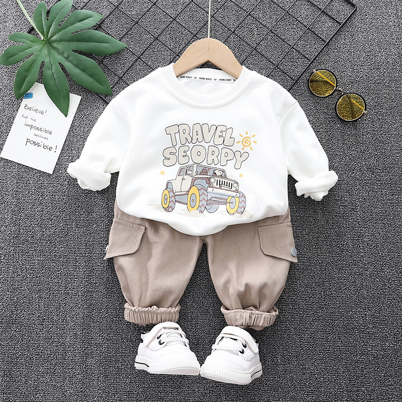 소년 세트 봄 만화 자동차 편지 둥근 목 어린이 조끼는 머리 세대와 세트 남성 아기를 다룬다스토어 가기