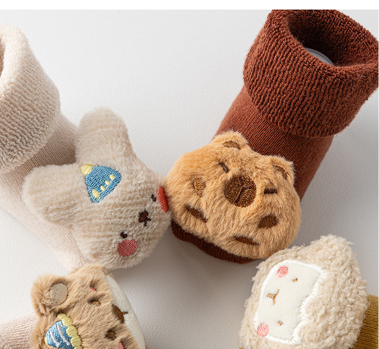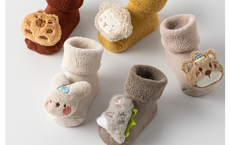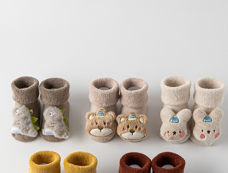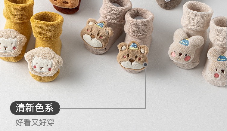 새로운 신생아 어린이 0-1-3 세 아기 면 가을과 겨울 기모 두꺼운 따뜻한 테리 튜브 바닥 양말