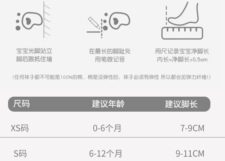 • XS 사이즈, 약 0-6개월, 권장 발 길이 7-9CM
