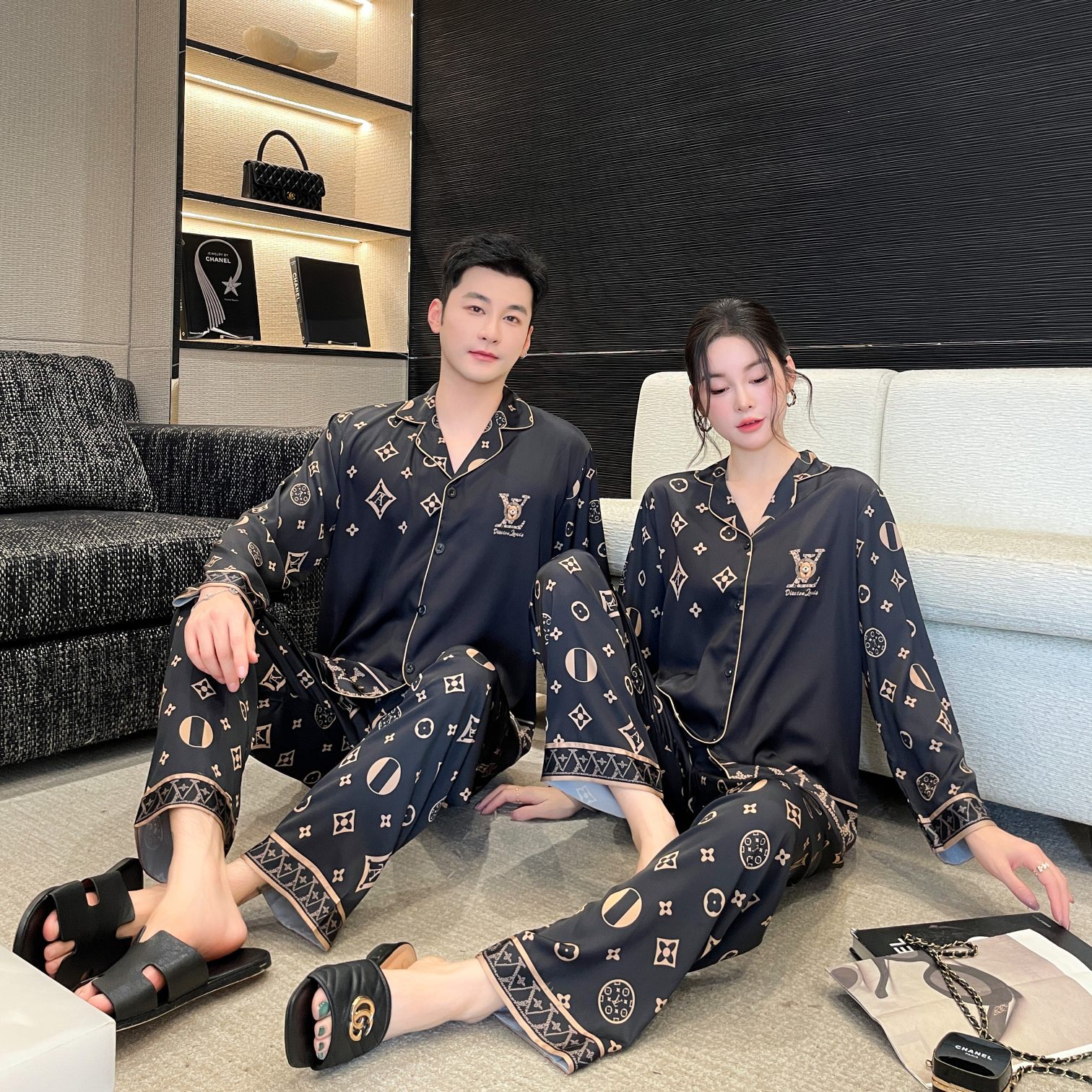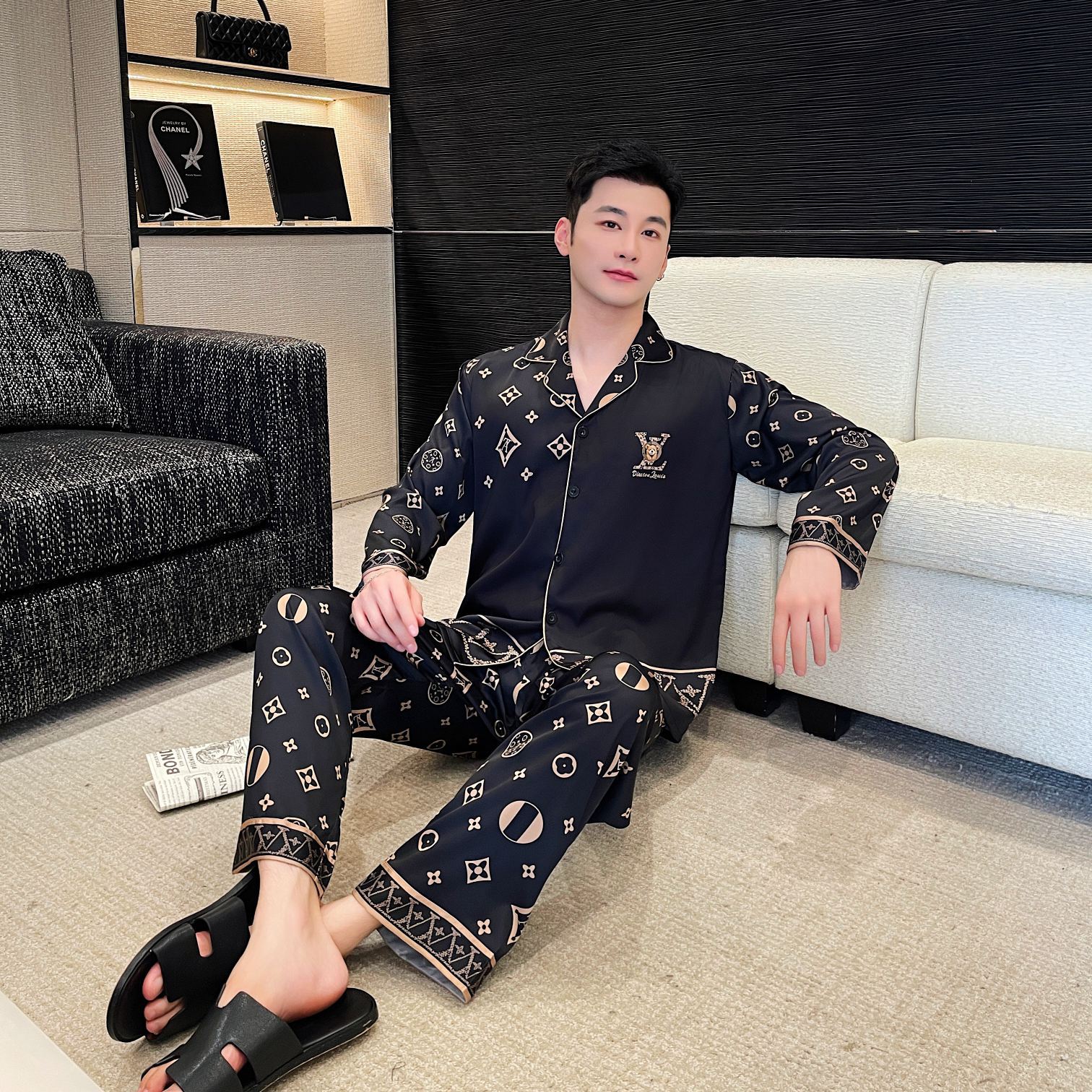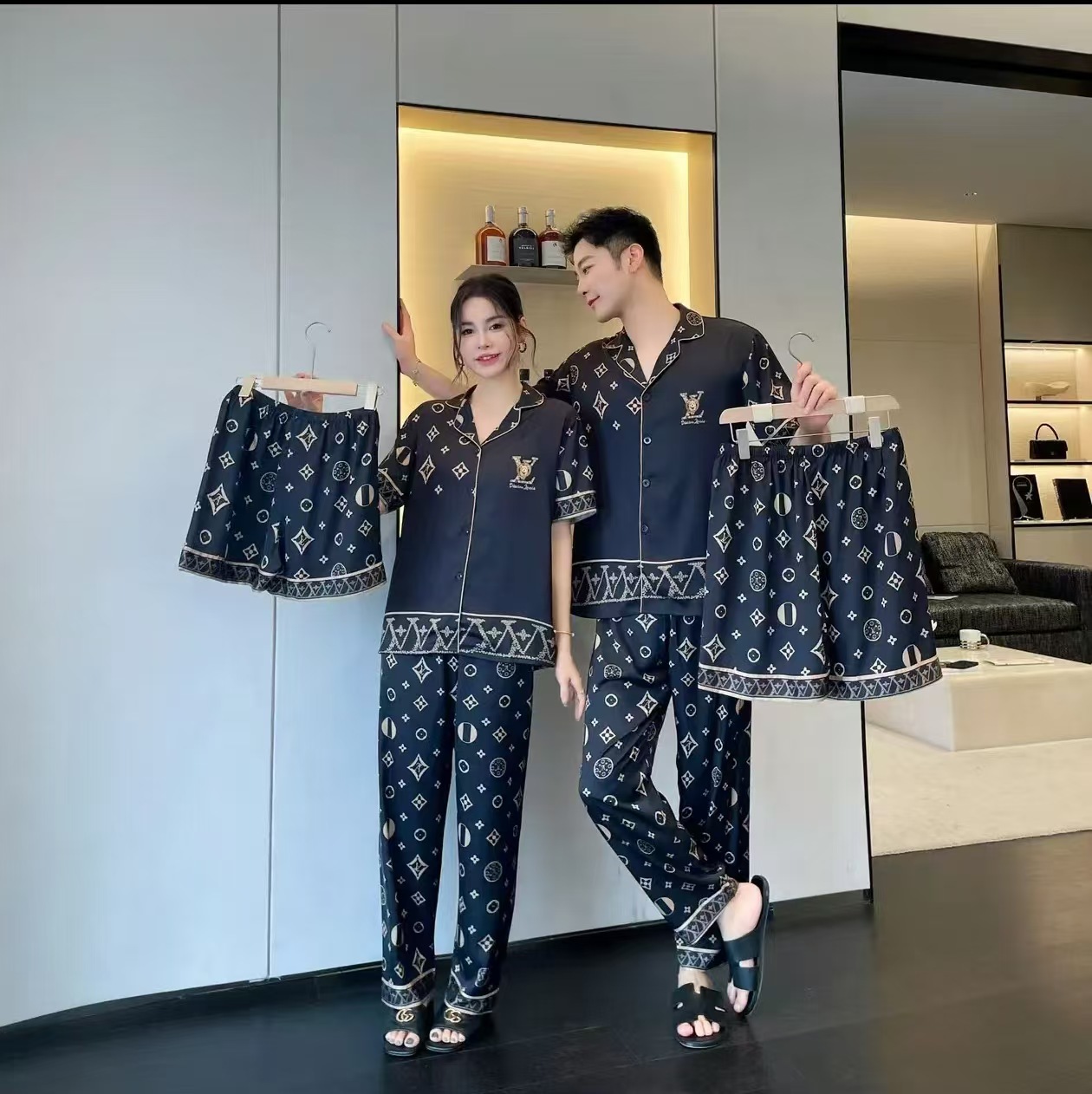 大码情侣睡衣冰丝小熊家居服套装高级感轻奢长短款舒适可外穿春秋
