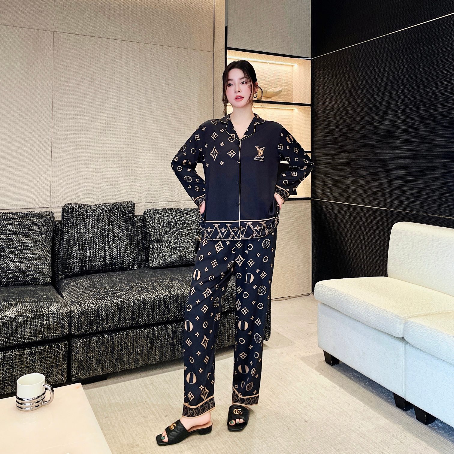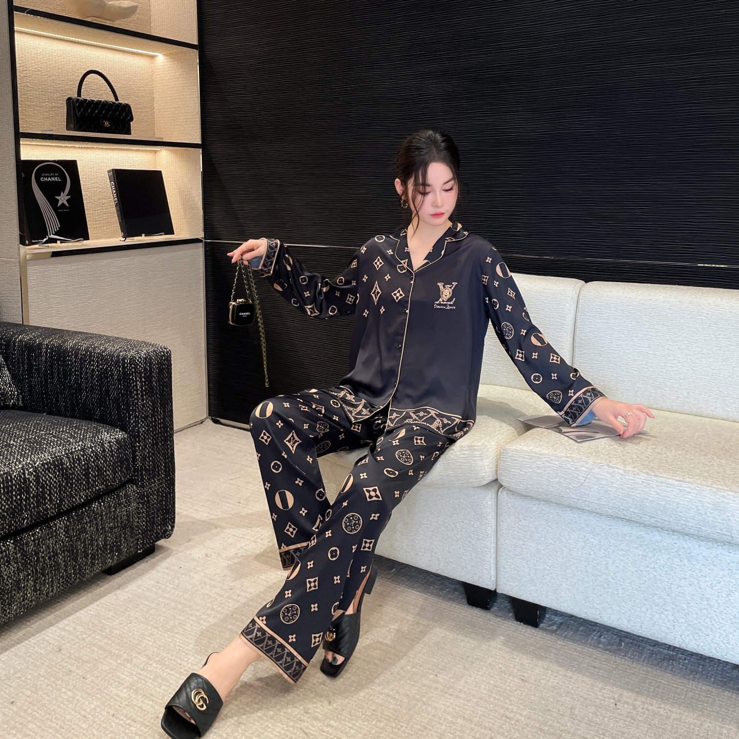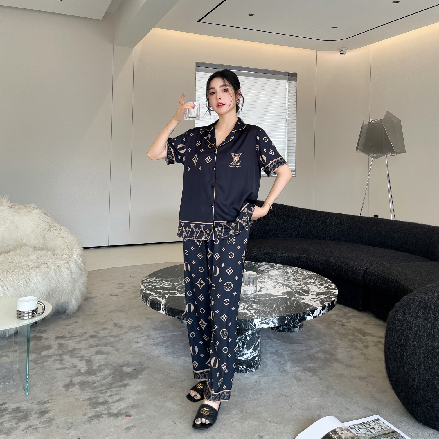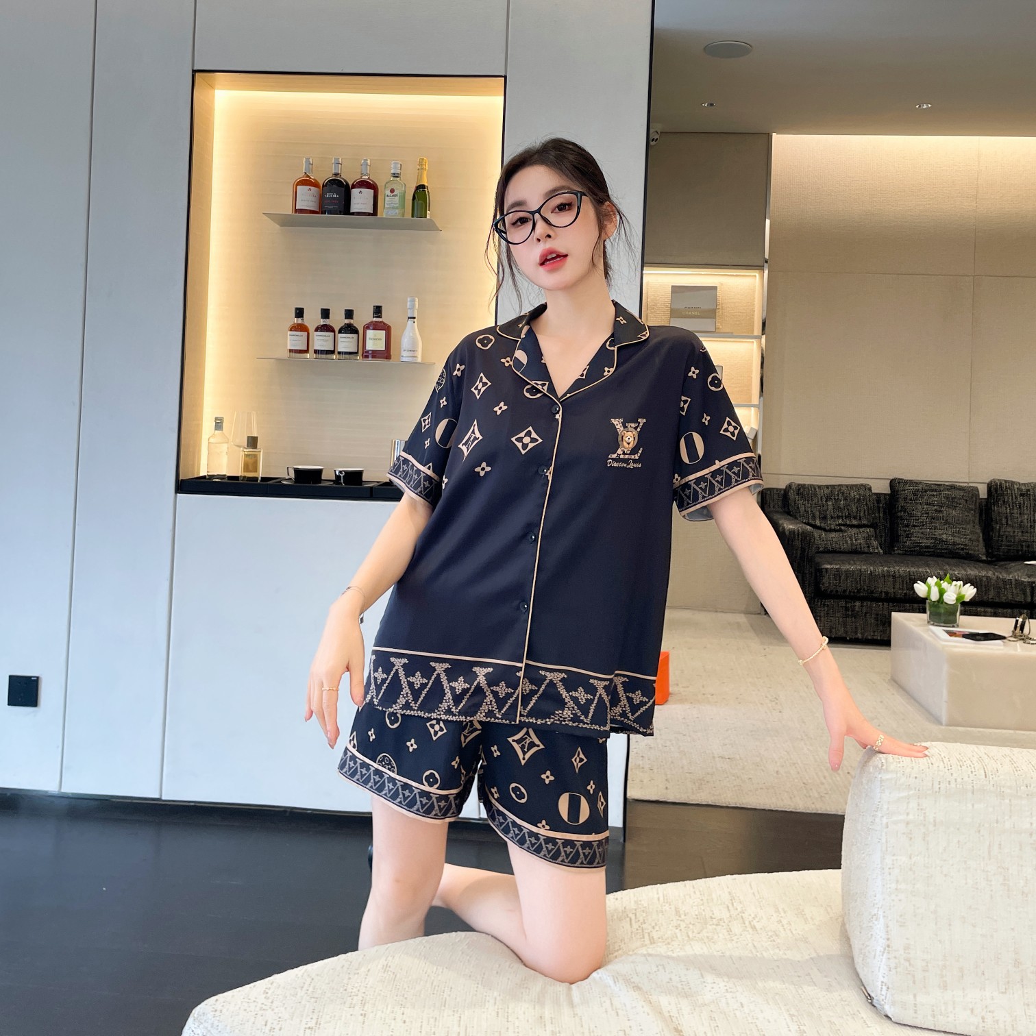 大码情侣睡衣冰丝小熊家居服套装高级感轻奢长短款舒适可外穿春秋