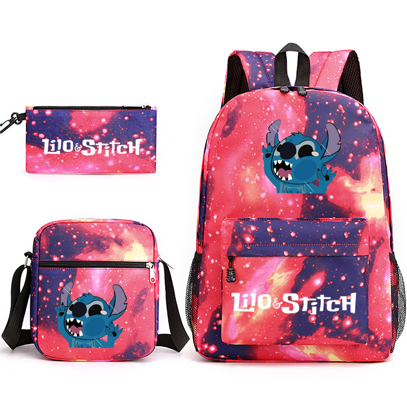 대외 무역 스티치 애니메이션 주변 인쇄 학교 가방 3 조각 세트 스티치 연필 케이스 어깨 가방 배낭스토어 가기