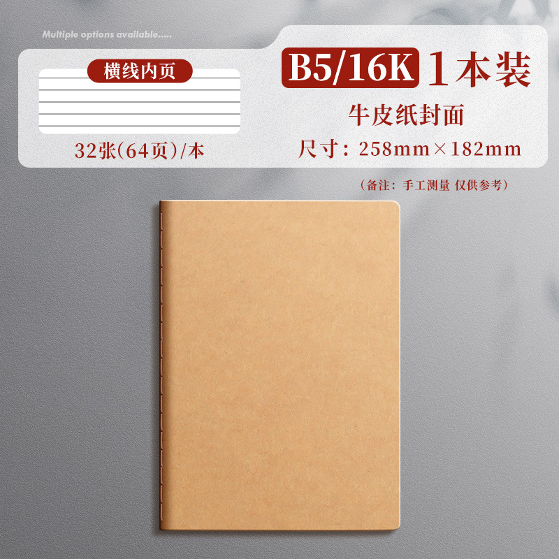 크래프트 종이 노트북 두꺼운 대학생 대학원 입학 시험 고등학생 b5 수평 라인 메모장 저널 크래프트 북스토어 가기