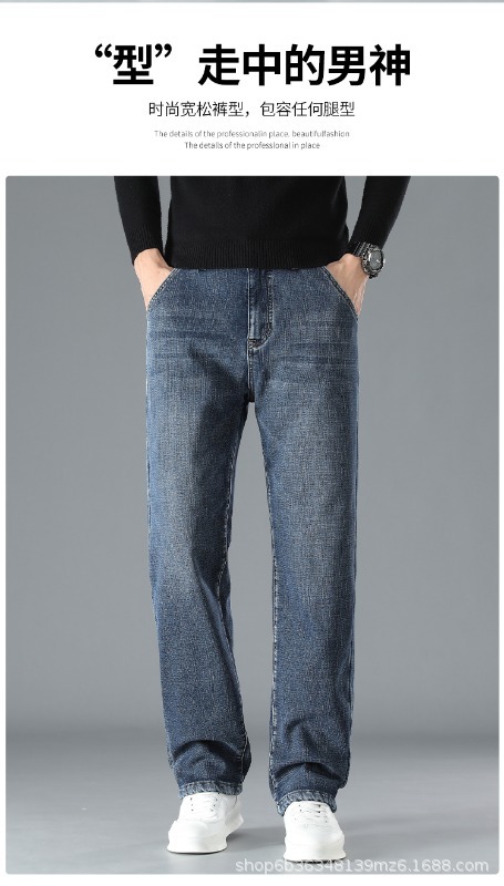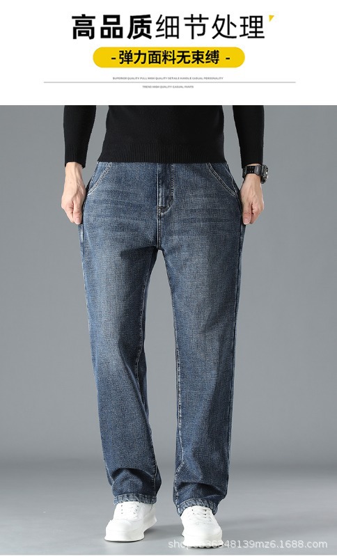 봄 느슨한 청바지 남자 스트레이트 캐주얼 바지 하이 엔드 트렌디 브랜드 탄성 봄과 가을 남자 올 매치 바지스토어 가기