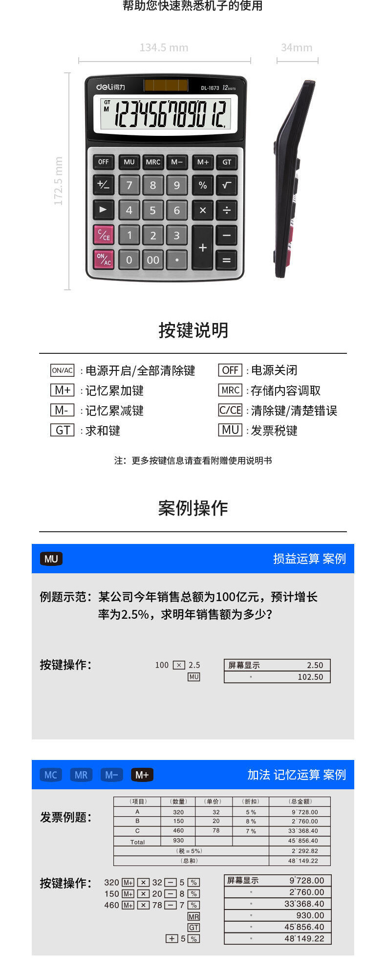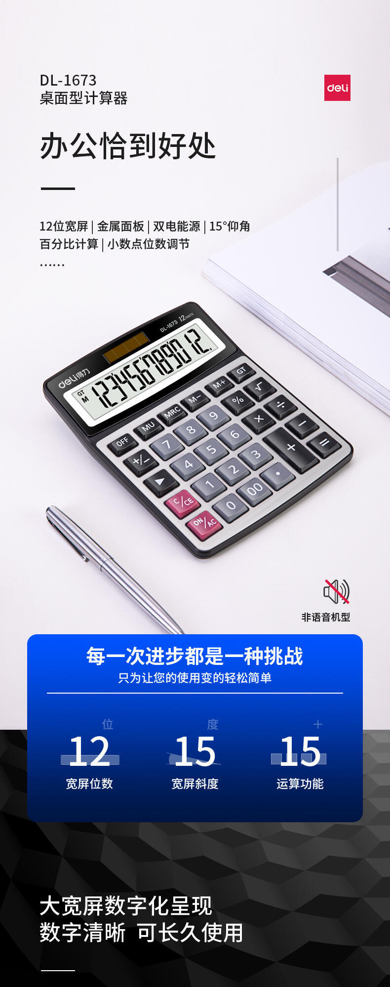 델리 다기능 태양 계산기 대형 스크린 키 음성 컴퓨터 금융 특별 사무용품 문구스토어 가기