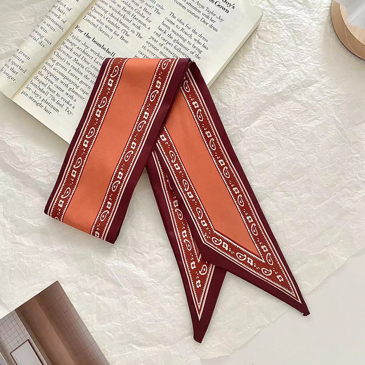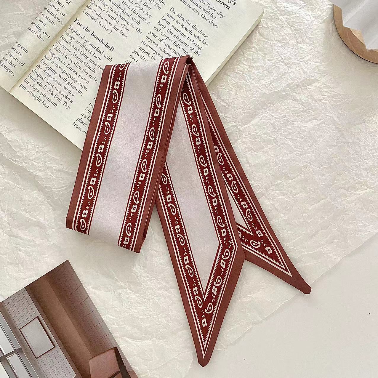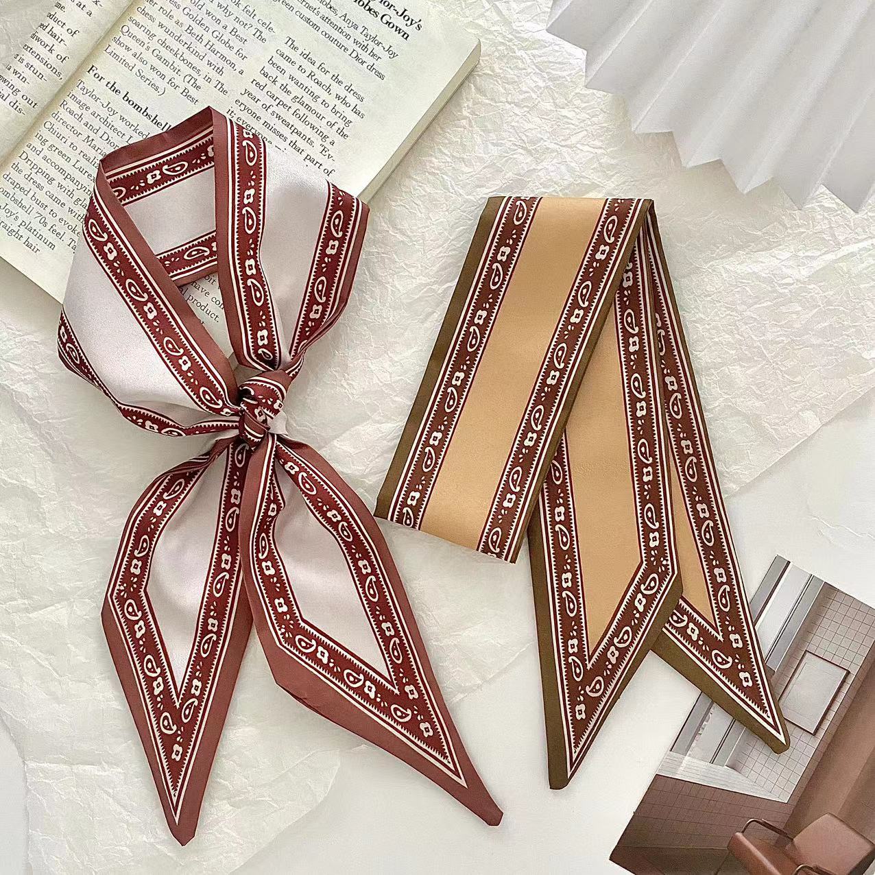 빈티지 좁은 긴 작은 실크 스카프 여성 봄과 여름 한국 스타일 올 매치 헤어 타이 백 솔리드 컬러 캐슈 플라워 헤어 벨트 리본