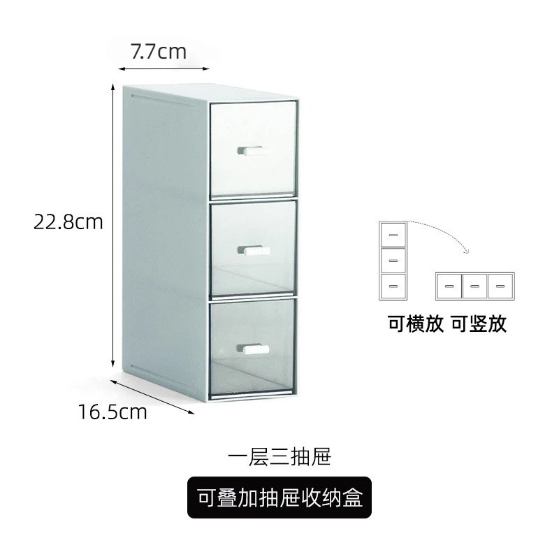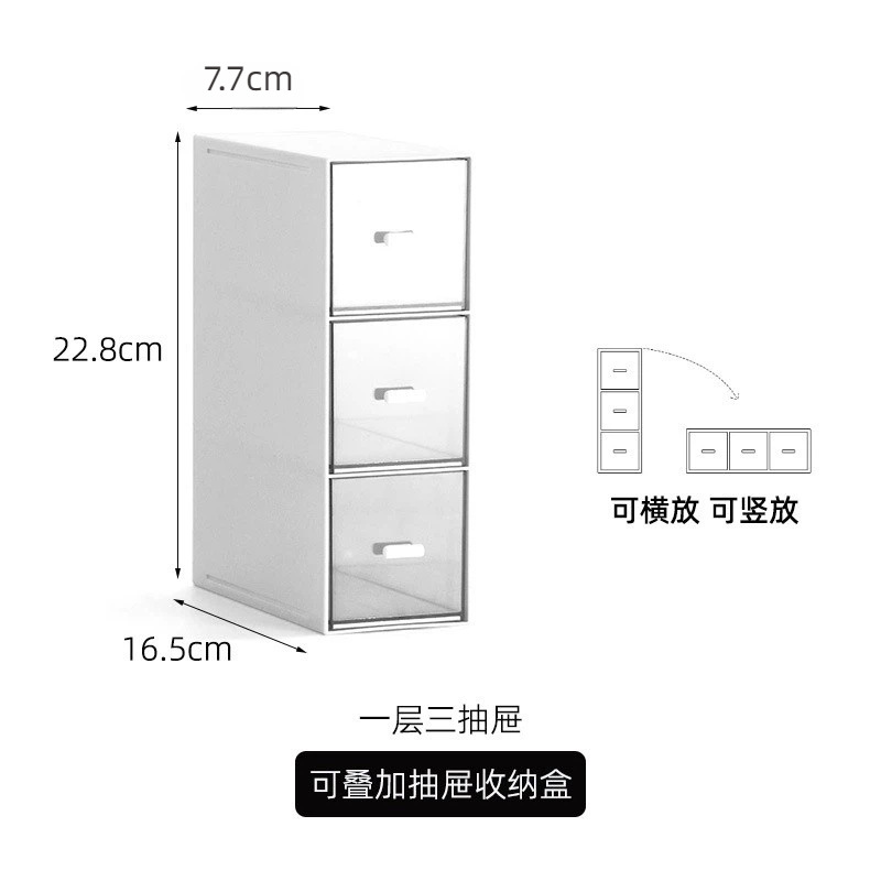 三格桌面抽屉收纳盒 | 产品材质:ABS+PS包装方式:热缩膜