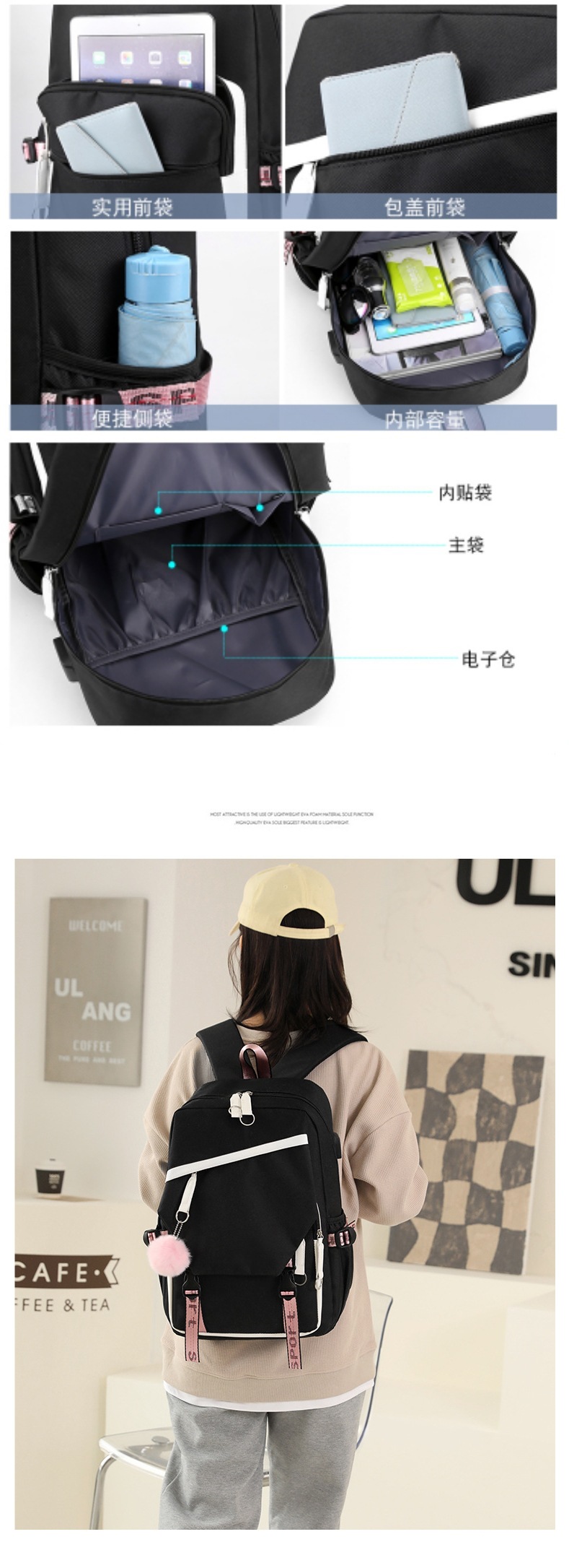 새로운 스타 아기 스티치 스티치 스티치 USB 충전식 스쿨백 남녀 학생 배낭 배낭