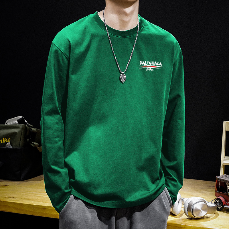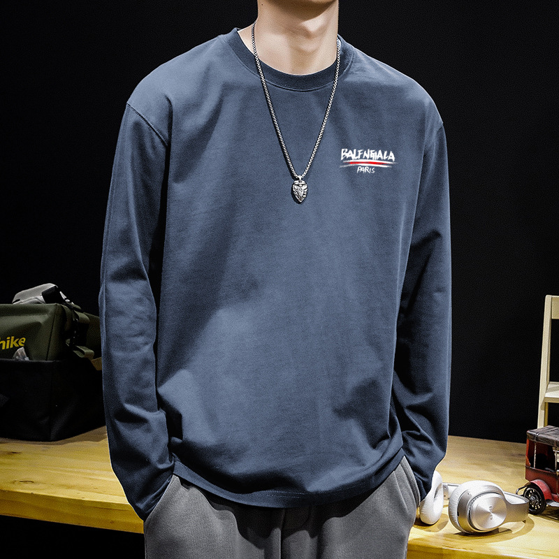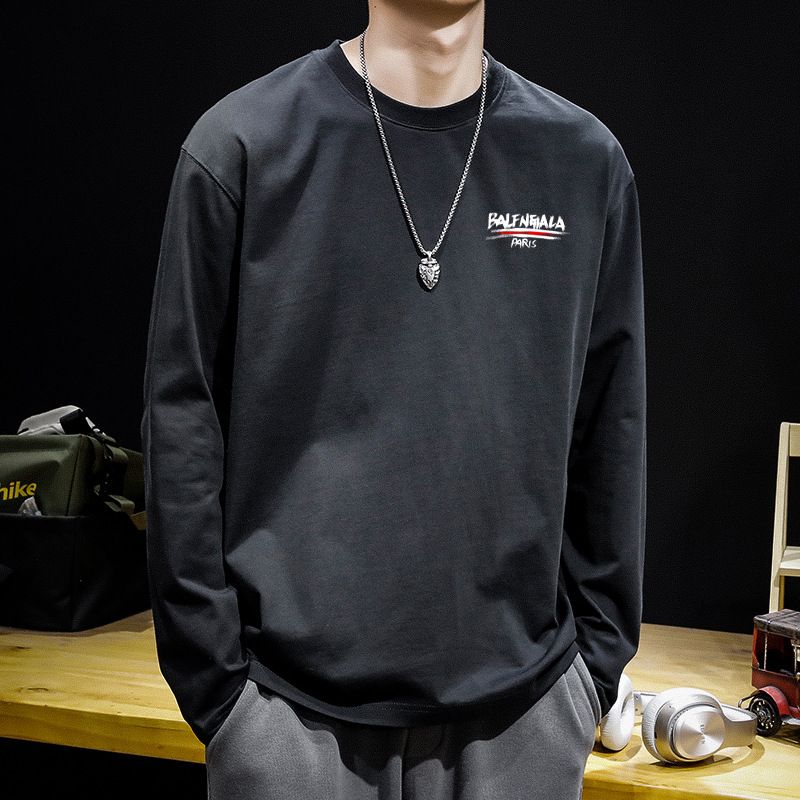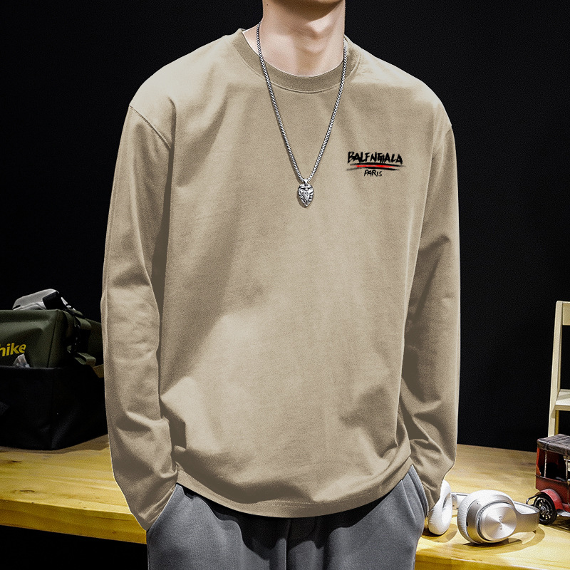 200g 헤비웨이트 긴팔 티셔츠 남성용 봄 가을 루즈핏 두꺼운 기본 티셔츠 단색 순면 라운드넥 긴팔 아메리칸 캐주얼