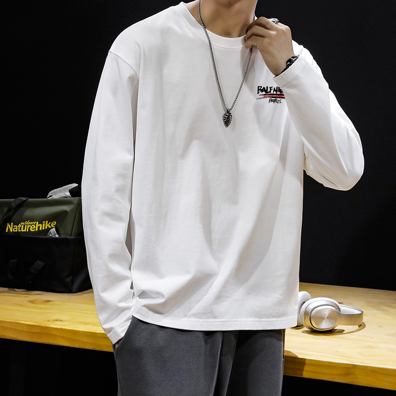 200g 헤비웨이트 긴팔 티셔츠 남성용 봄 가을 루즈핏 두꺼운 기본 티셔츠 단색 순면 라운드넥 긴팔 아메리칸 캐주얼스토어 가기