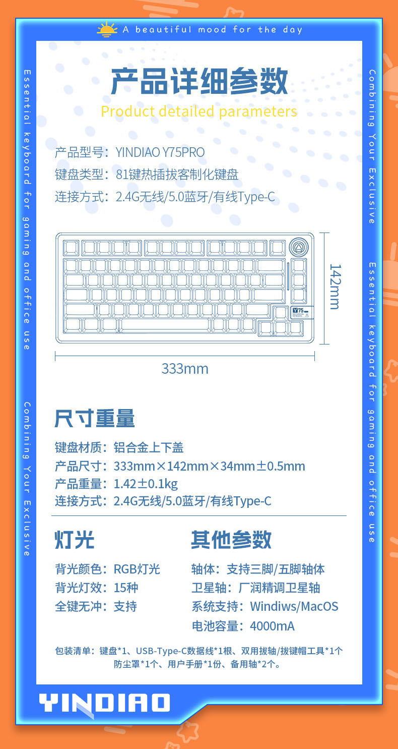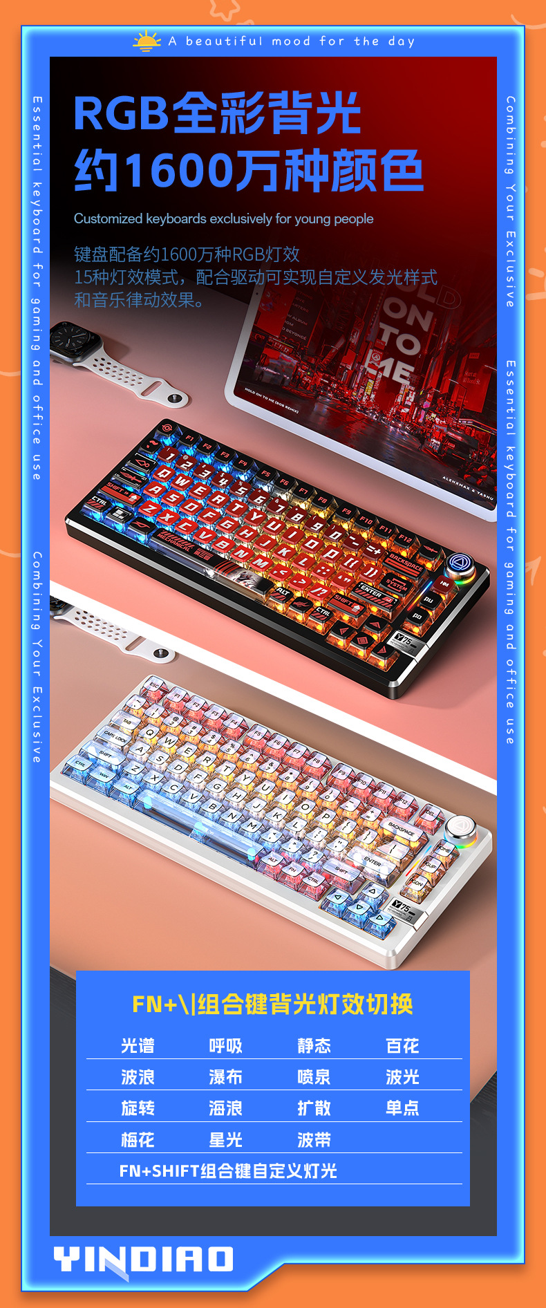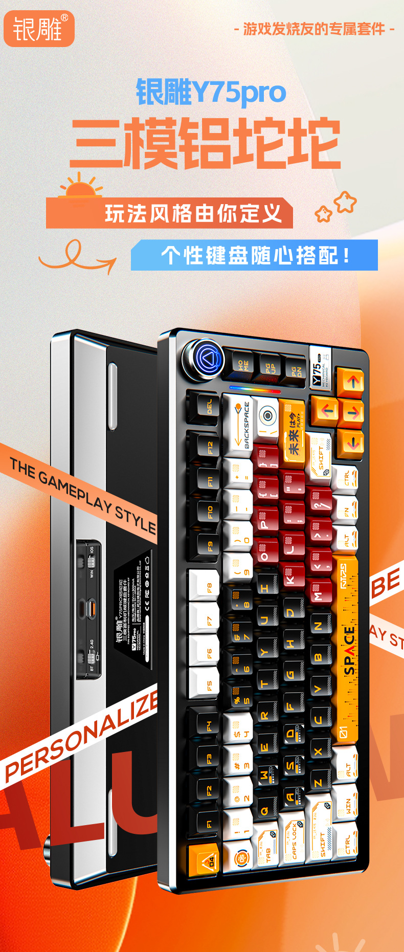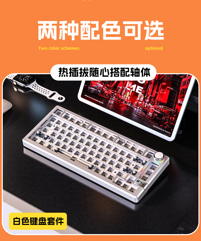 실버 조각 Y75Pro 알루미늄 Tuo Tuo 블루투스 무선 3 모드 기계 키보드 E-스포츠 게임 컴퓨터 금속 유선 키트스토어 가기