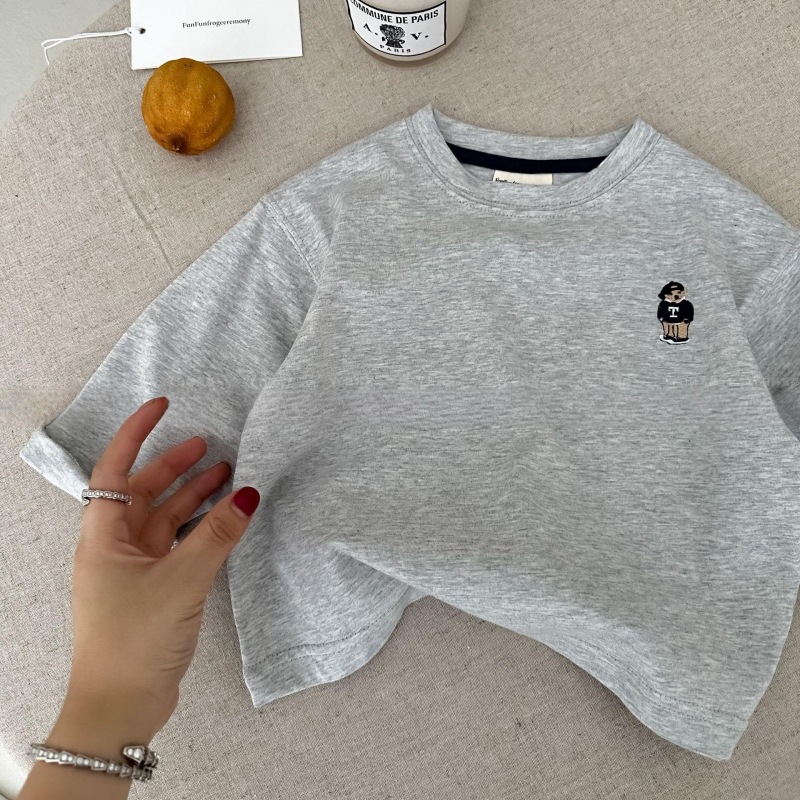 스팟상품! 아동 티셔츠 2025 봄, 가을 아동 유행 브랜드 탑 베어 베이비 만화 바닥 셔츠 유행 스타일