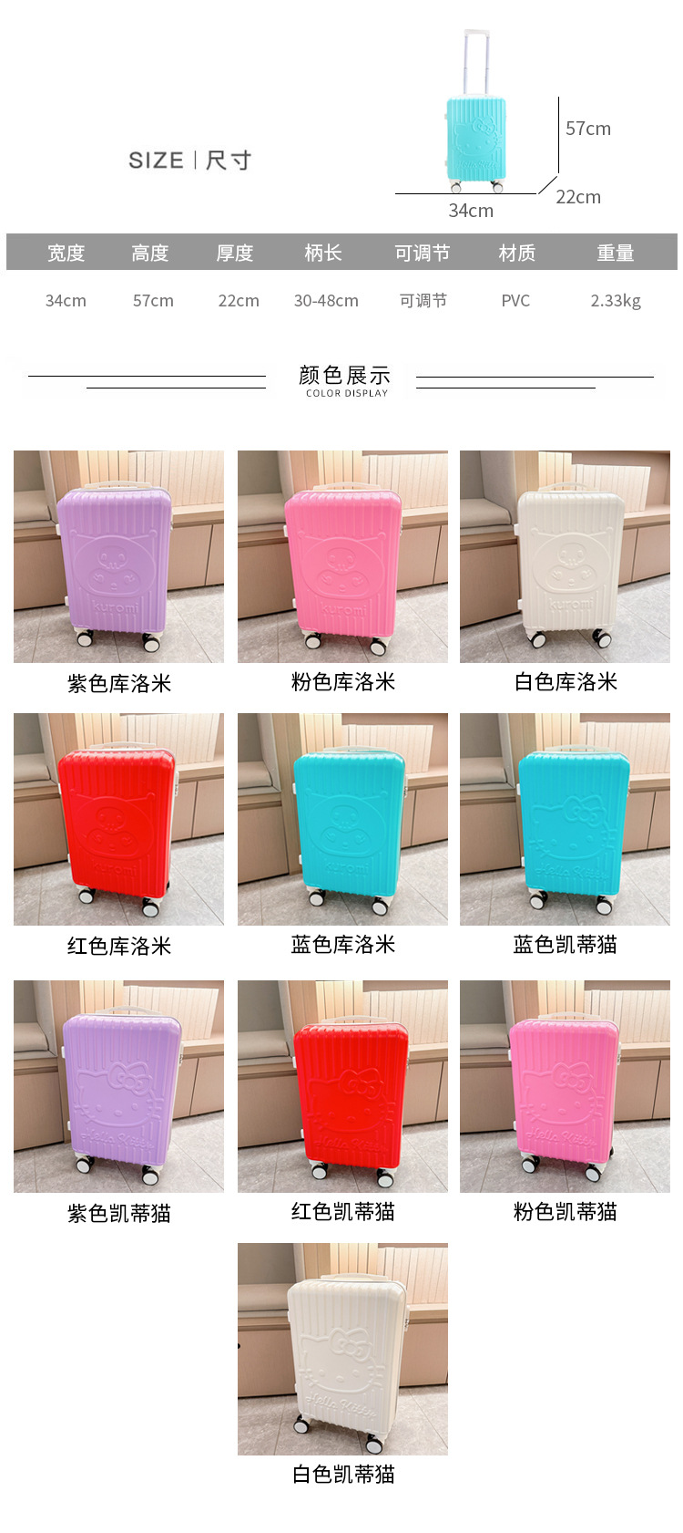 새로운 20inch 만화 한국어 버전 다이아몬드 kt 고양이 쿠로미 가방 학생 트롤리 케이스 탑승 코드 상자스토어 가기