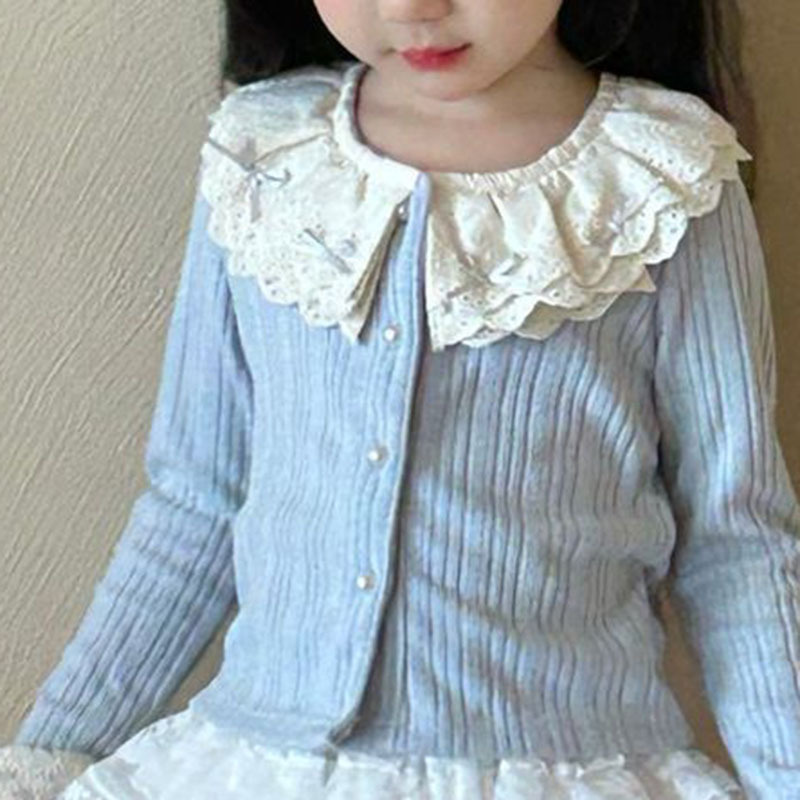한국 스타일 여아 가디건 자켓 2026 봄 달콤한 니트 다용도 니트 스웨터 인형 칼라 탑 트렌디 투피스 세트스토어 가기