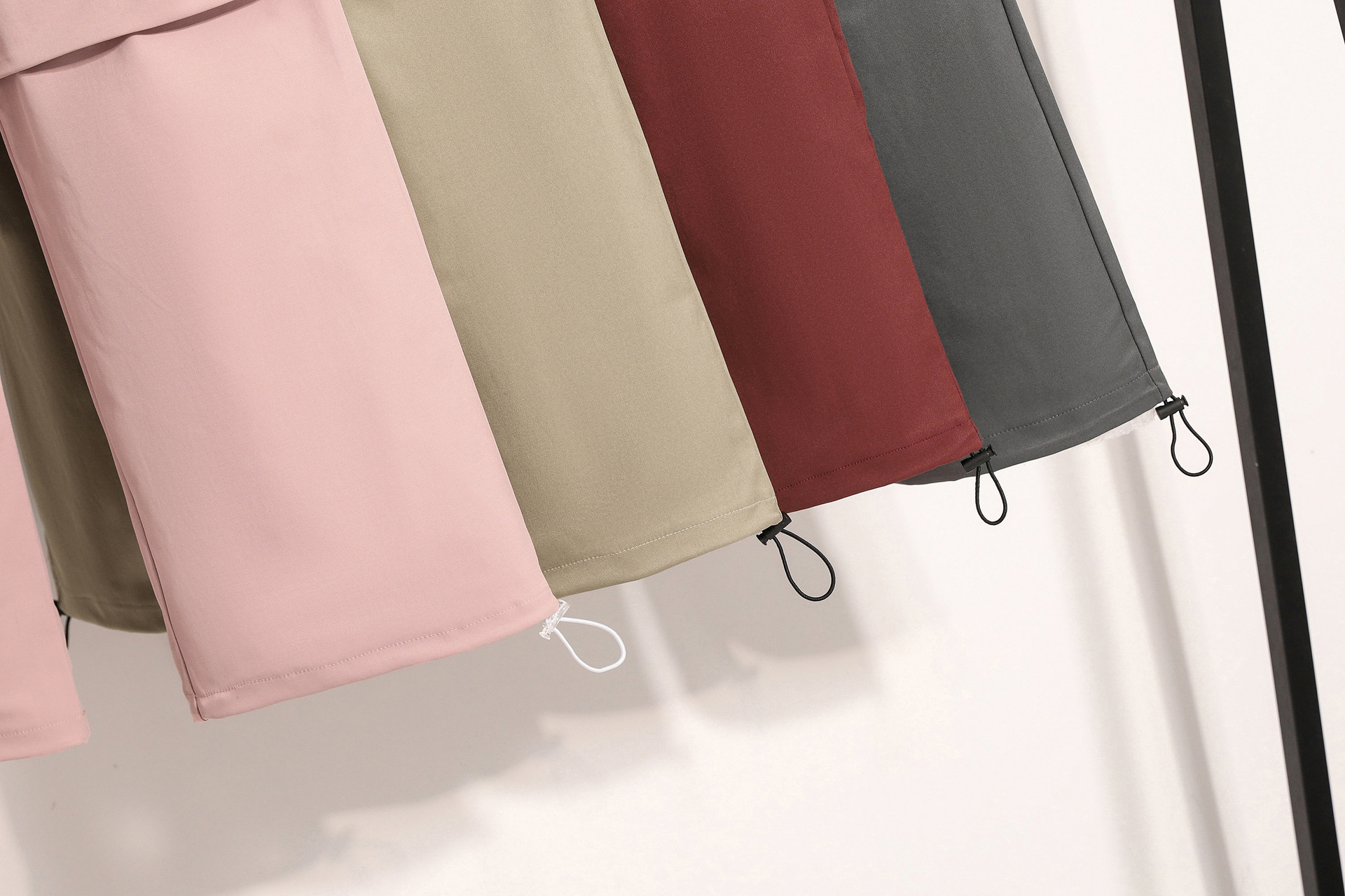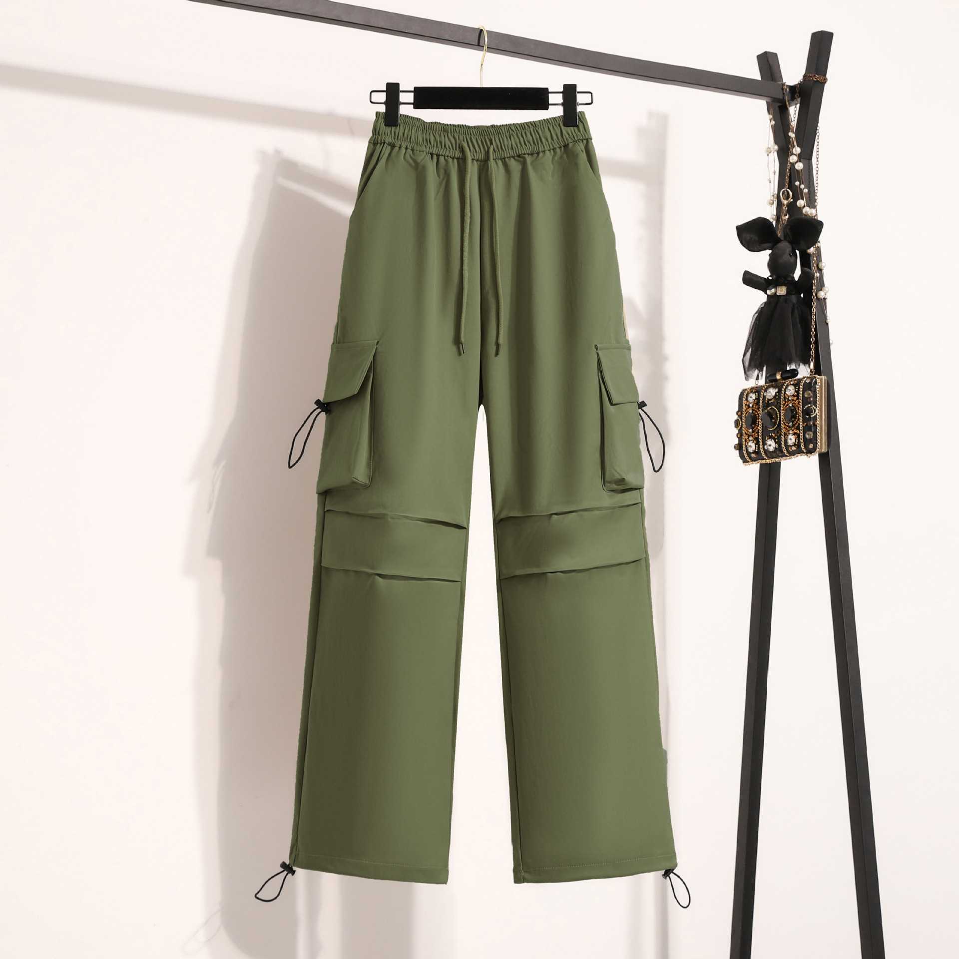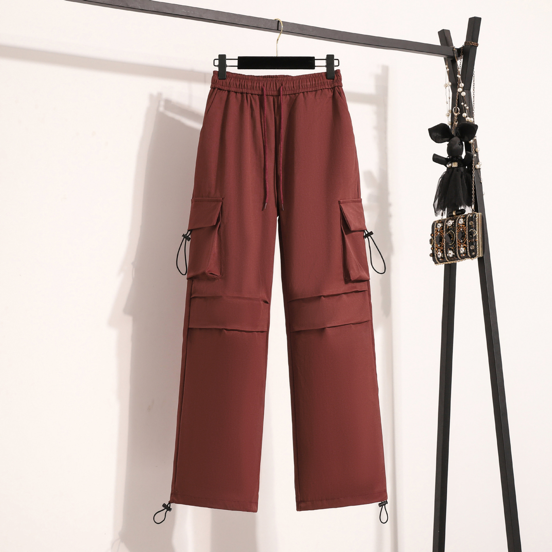미국식 바지 여성 2025 년 봄과 가을 새로운 탄성 허리 스트레이트 튜브 슬리밍 캐주얼 멀티 백 드로스트링 블랙 팬츠