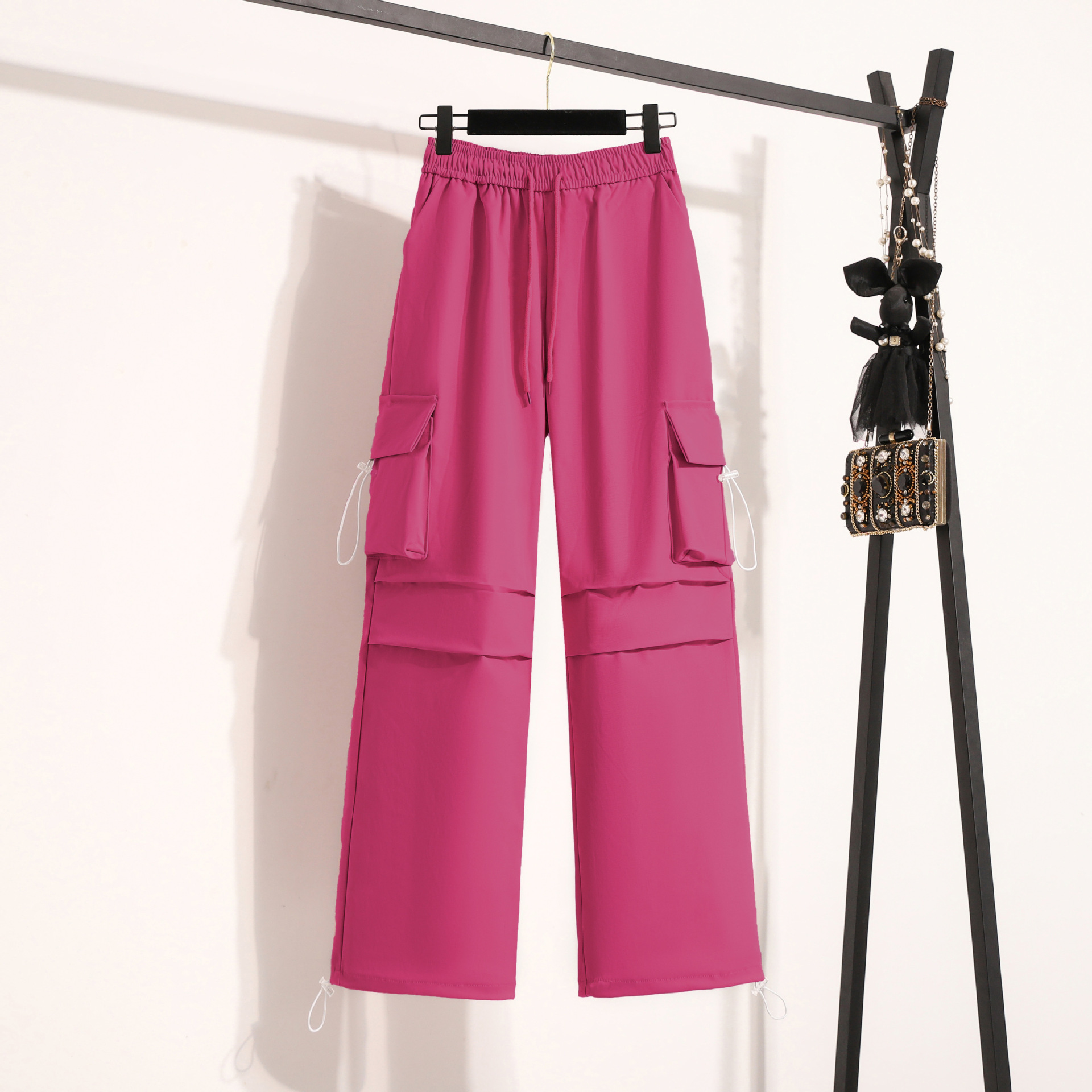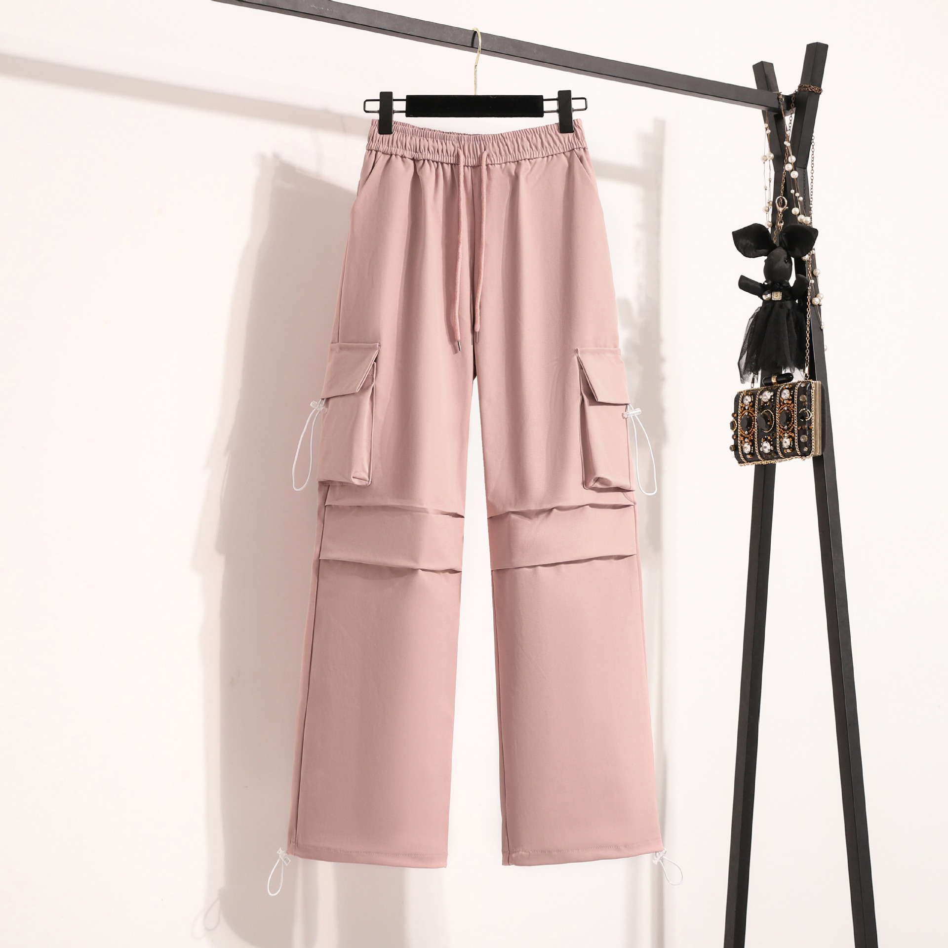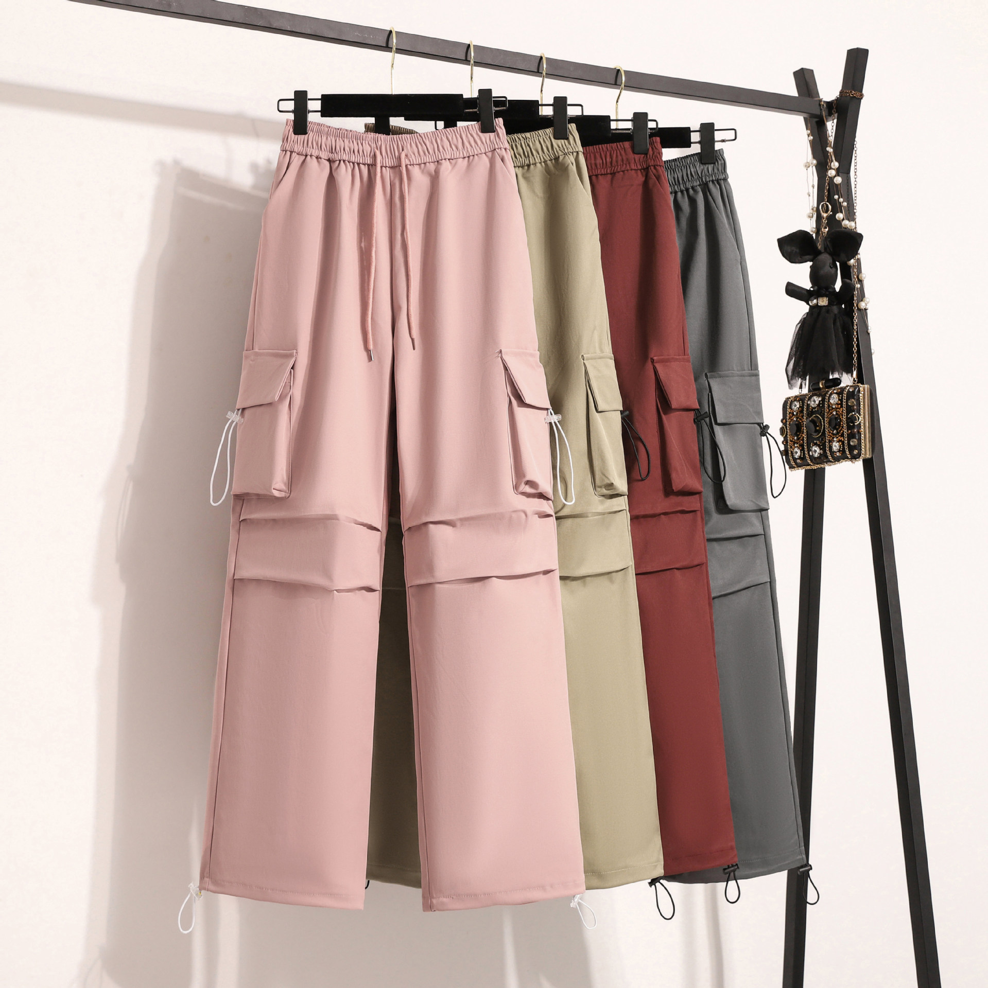 미국식 바지 여성 2025 년 봄과 가을 새로운 탄성 허리 스트레이트 튜브 슬리밍 캐주얼 멀티 백 드로스트링 블랙 팬츠스토어 가기