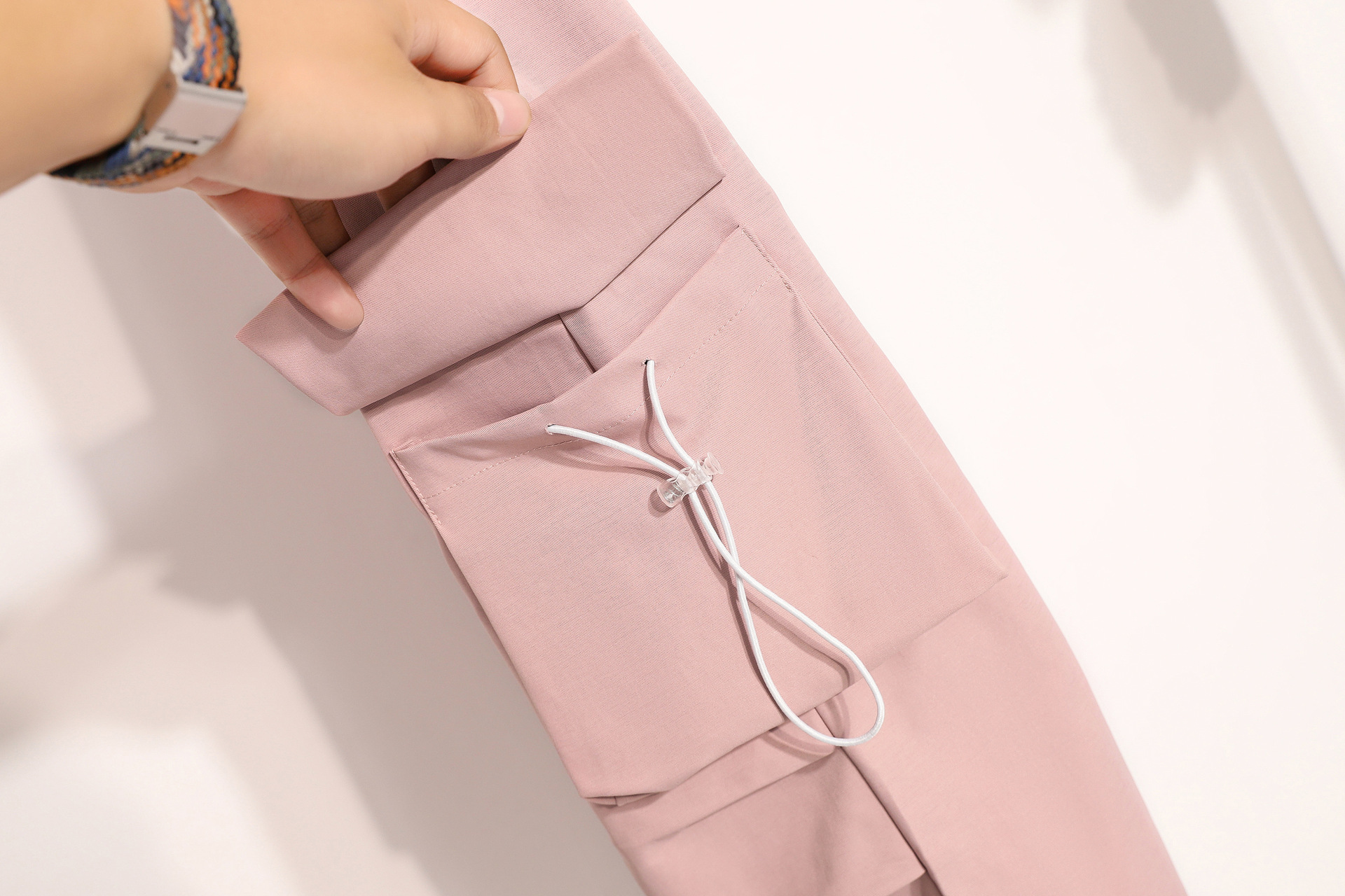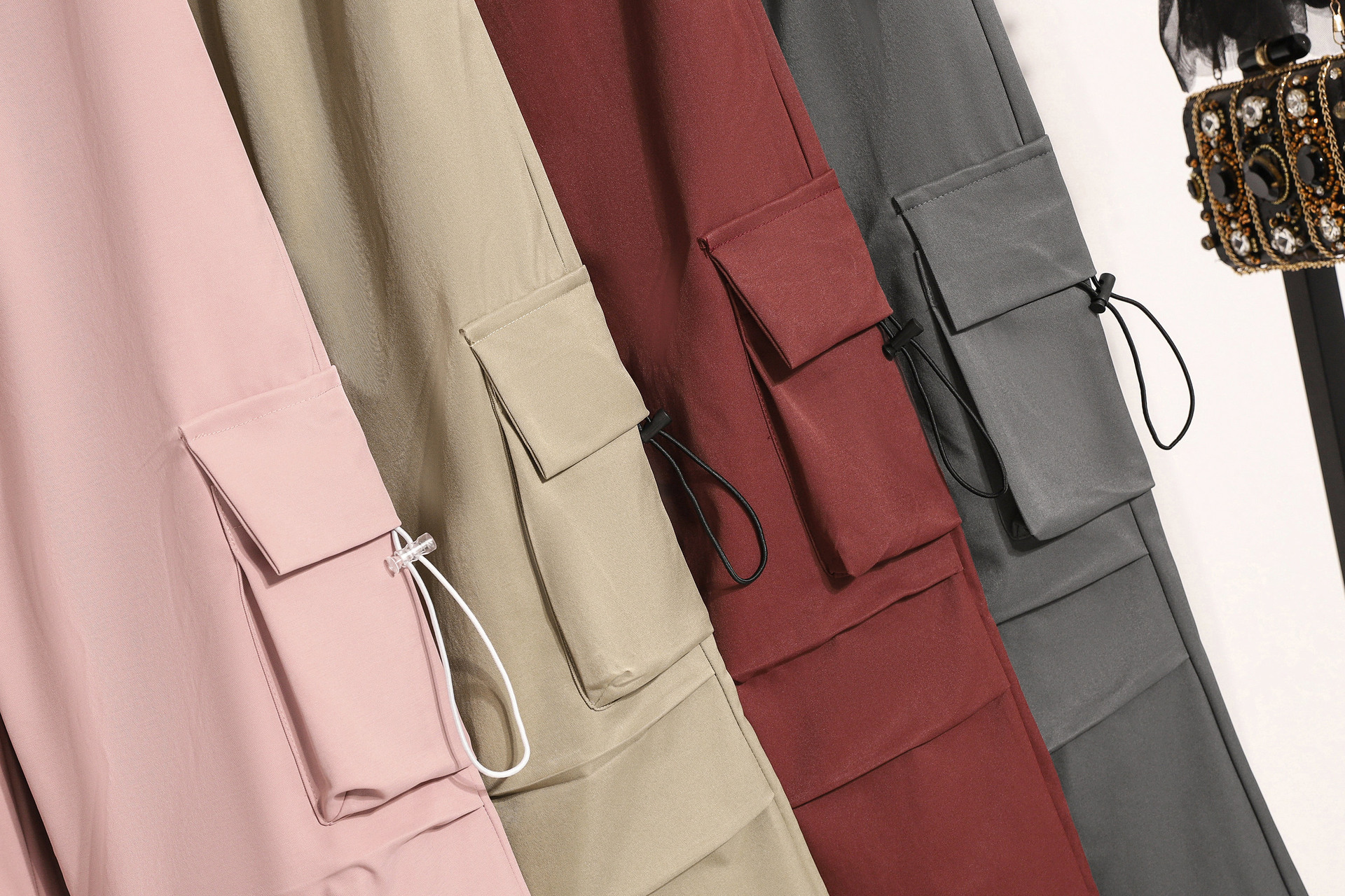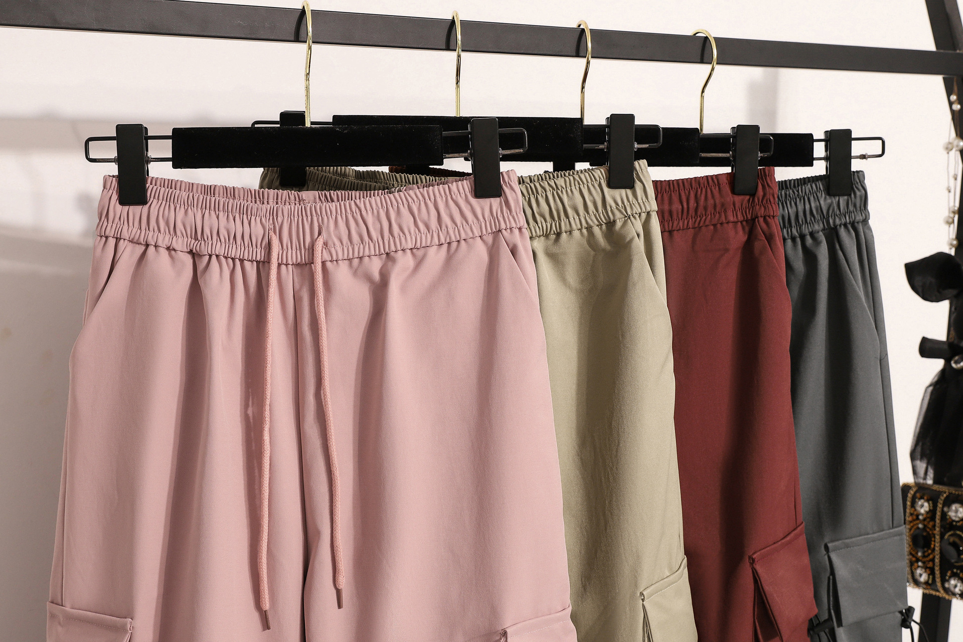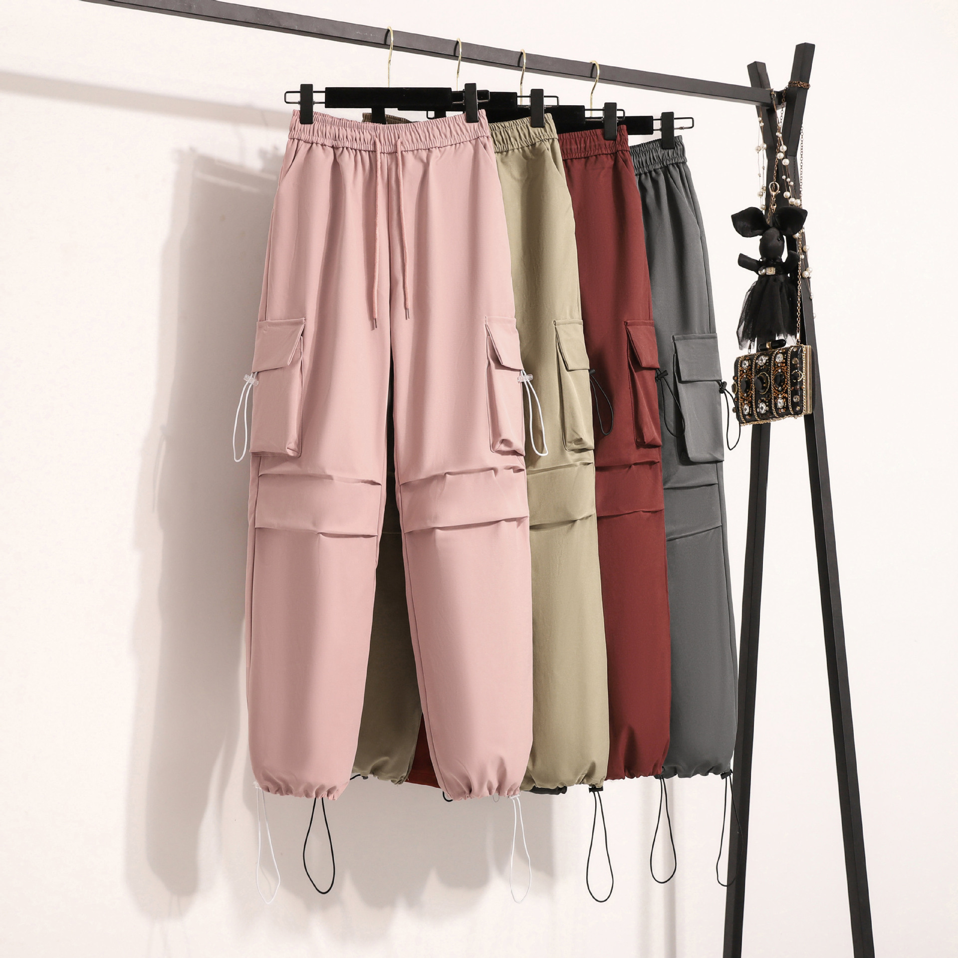 미국식 바지 여성 2025 년 봄과 가을 새로운 탄성 허리 스트레이트 튜브 슬리밍 캐주얼 멀티 백 드로스트링 블랙 팬츠스토어 가기