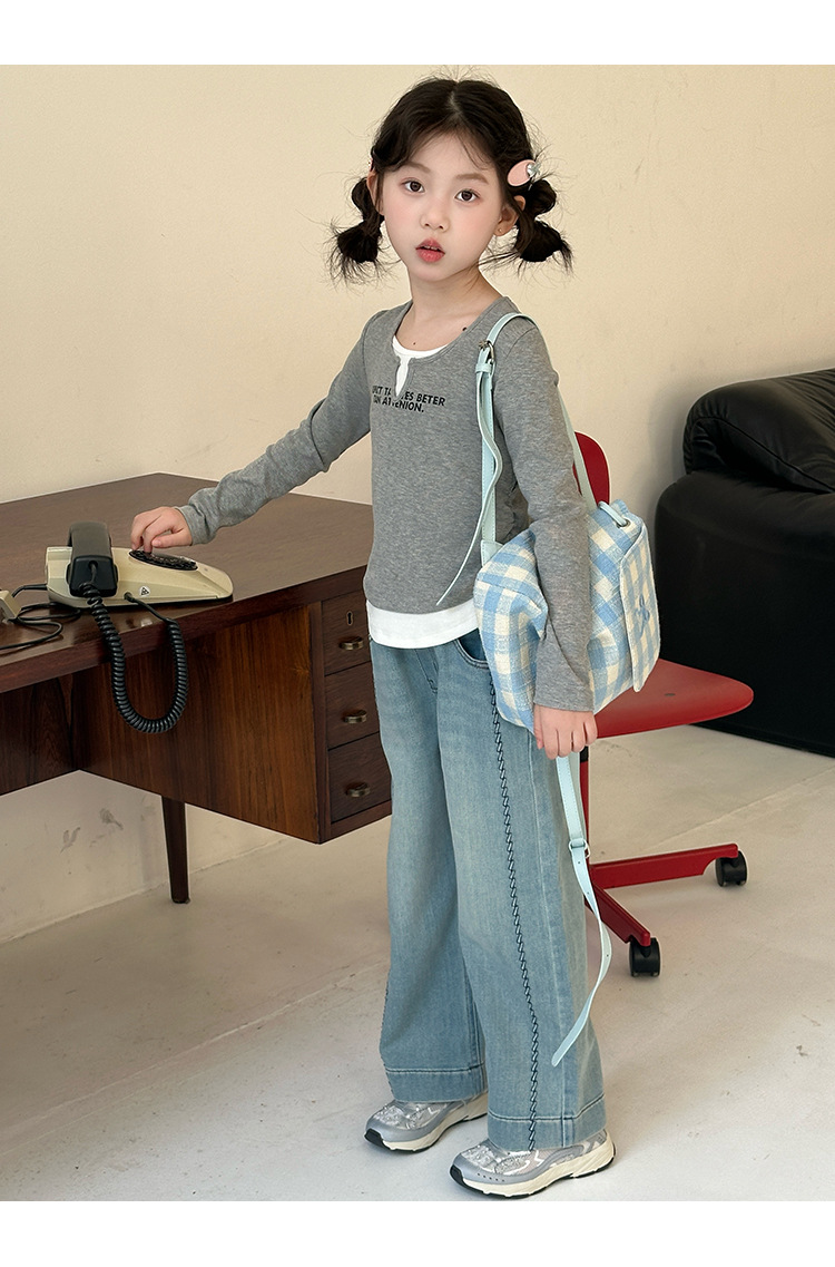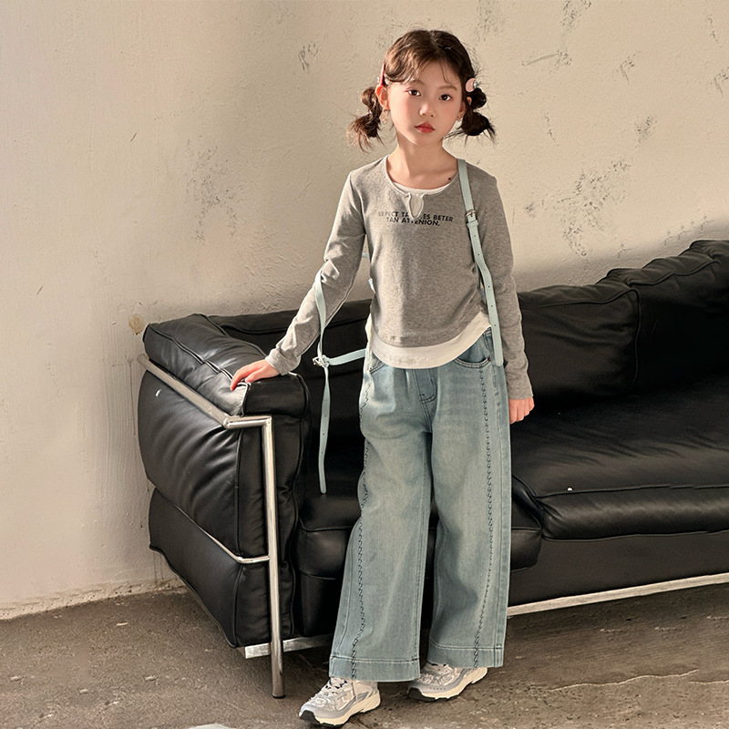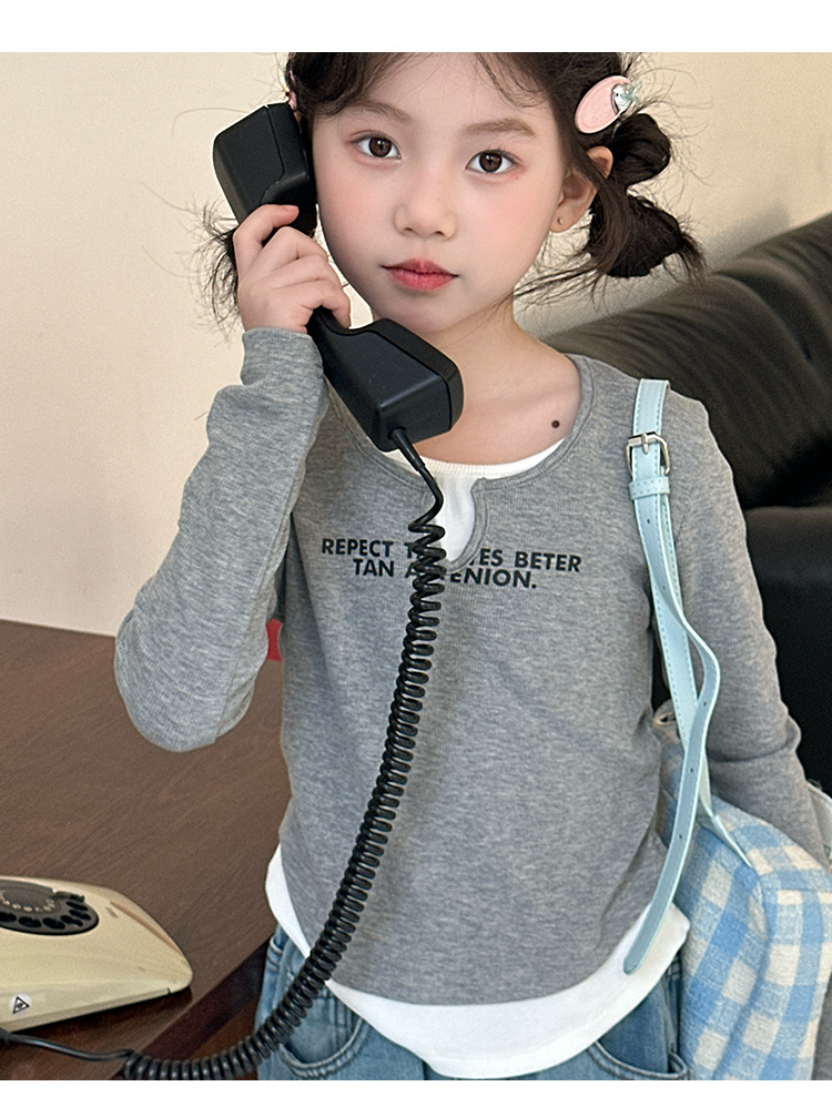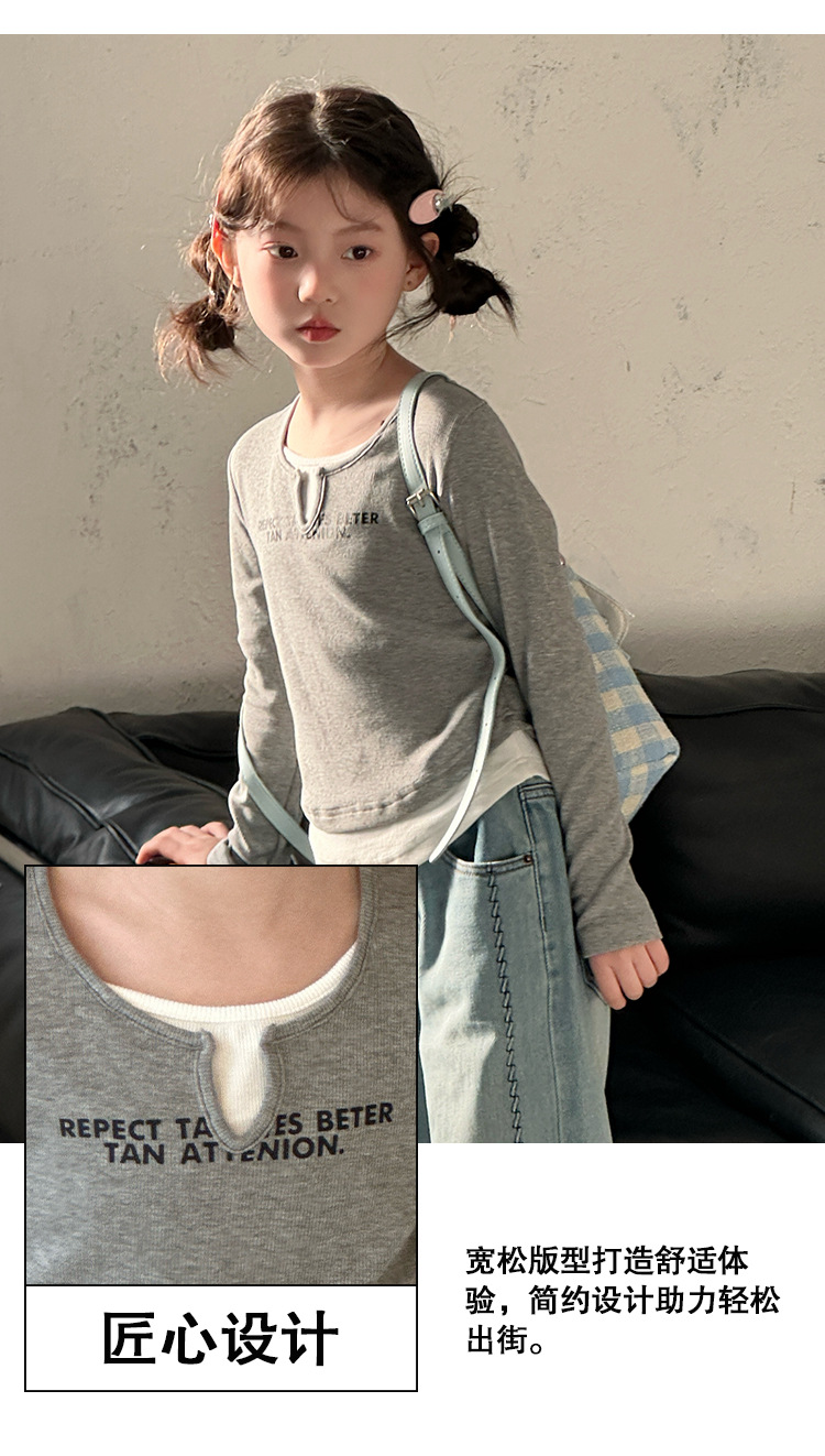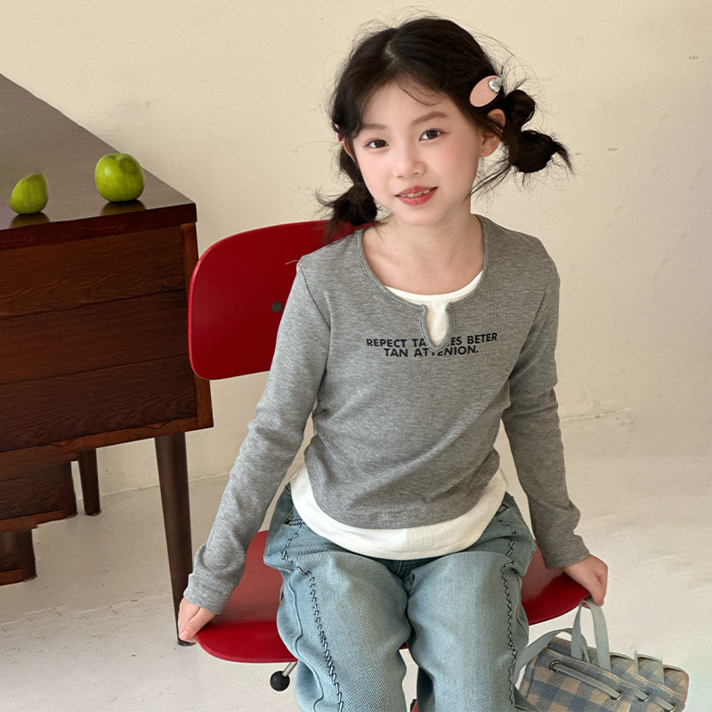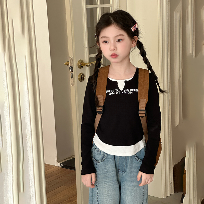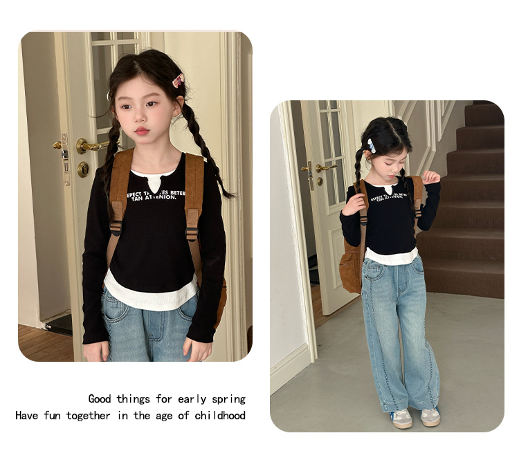 소녀 가짜 투피스 탑 봄 2025 새로운 스타일 슬림 핏 티셔츠 어린이 스프링베이스 셔츠