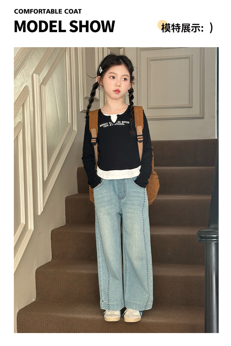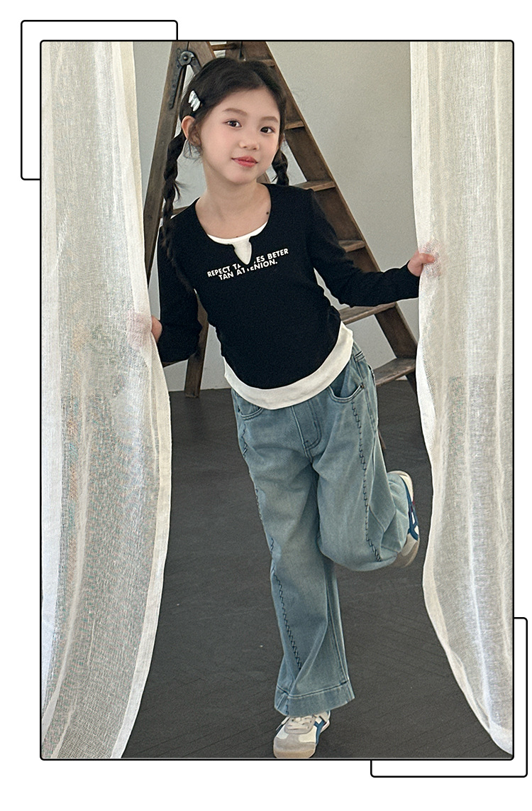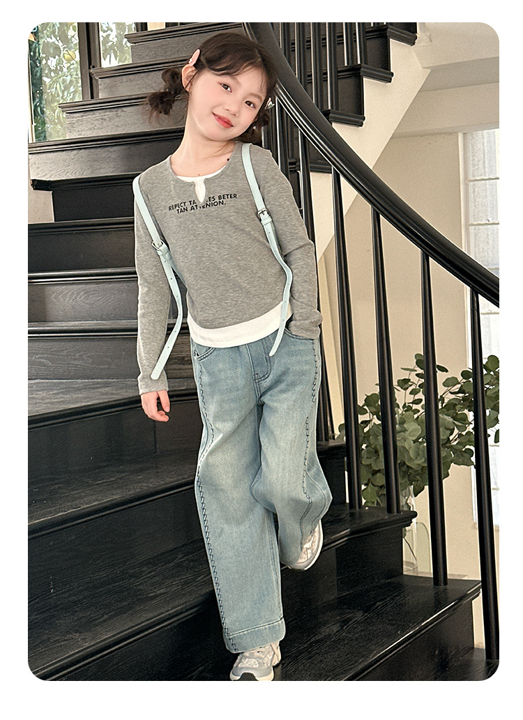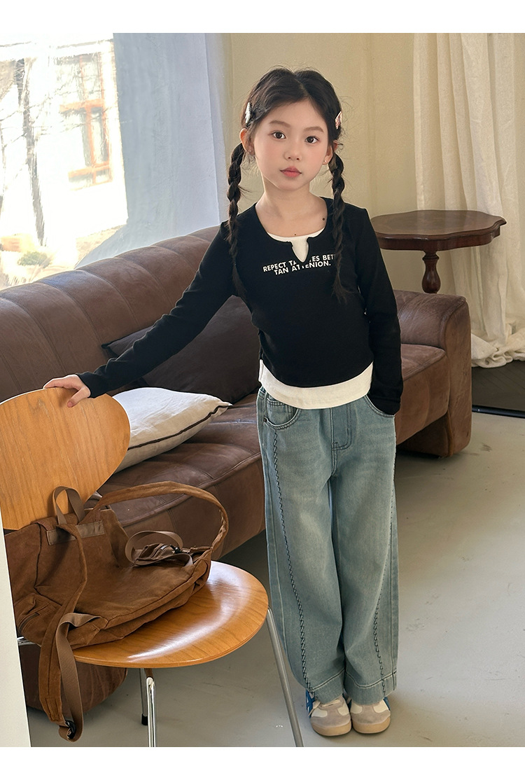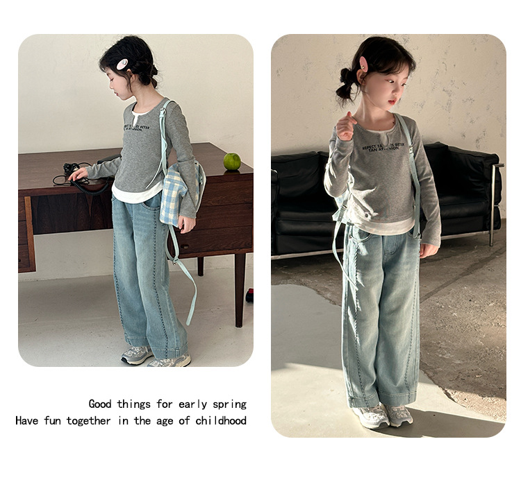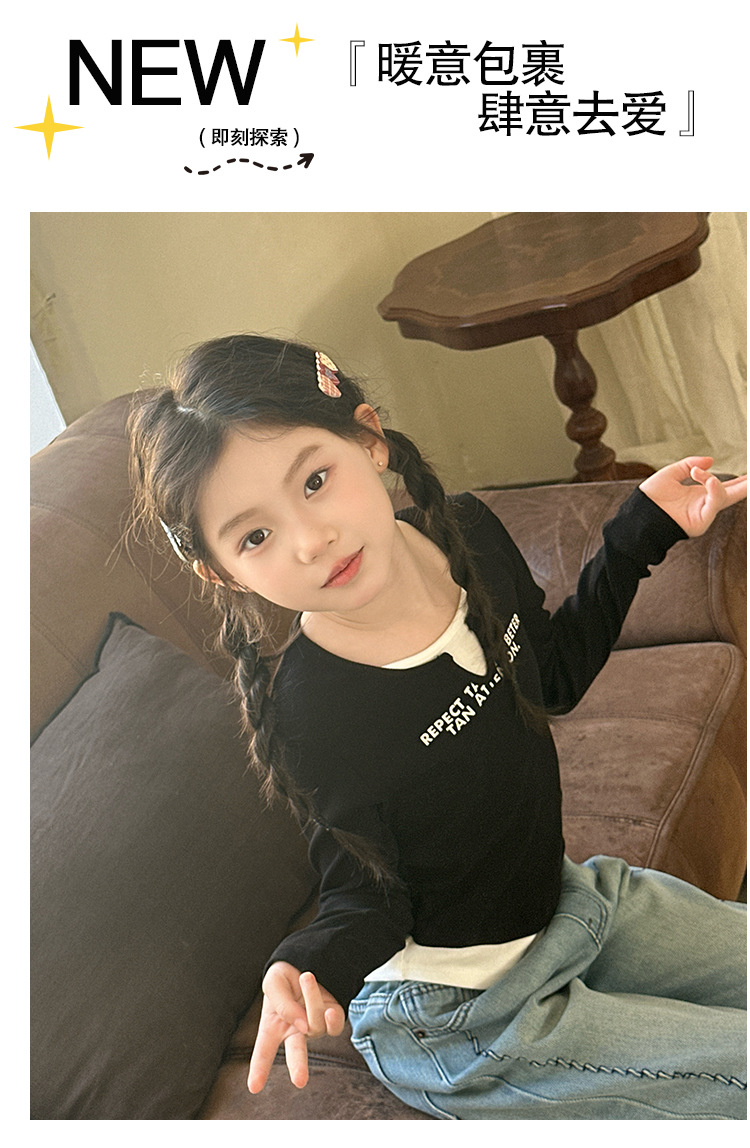 소녀 가짜 투피스 탑 봄 2025 새로운 스타일 슬림 핏 티셔츠 어린이 스프링베이스 셔츠스토어 가기