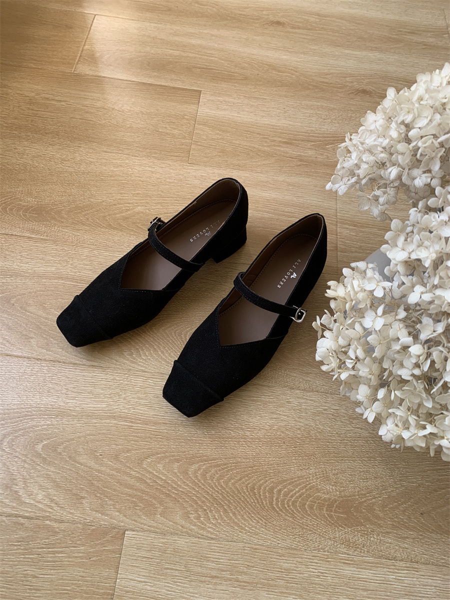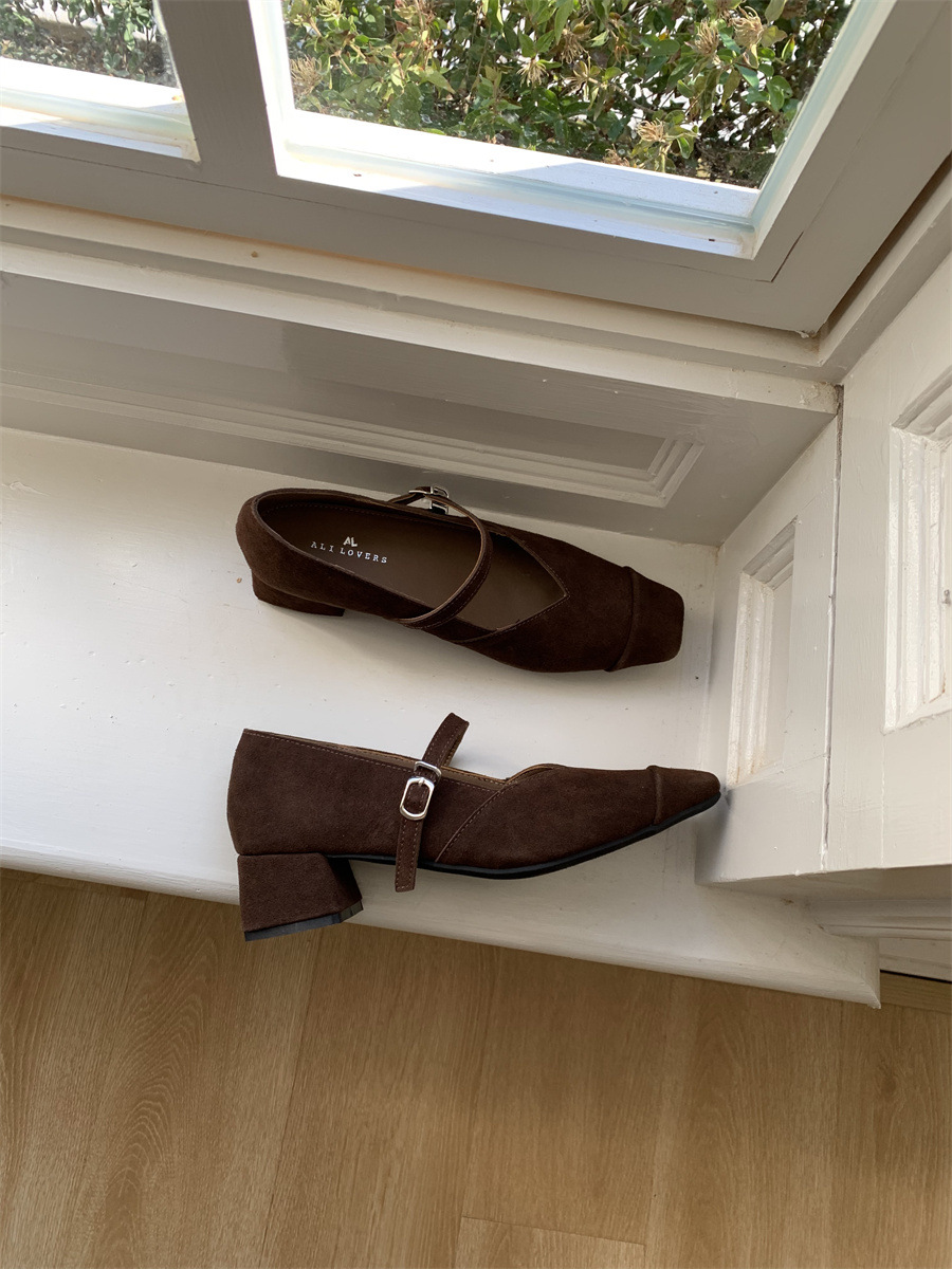 프랑스 레트로 메리 제인 신발 여성 2025 봄 새로운 스웨이드 스티칭 라이트 두꺼운 힐 스퀘어 발가락 싱글 버튼 신발스토어 가기