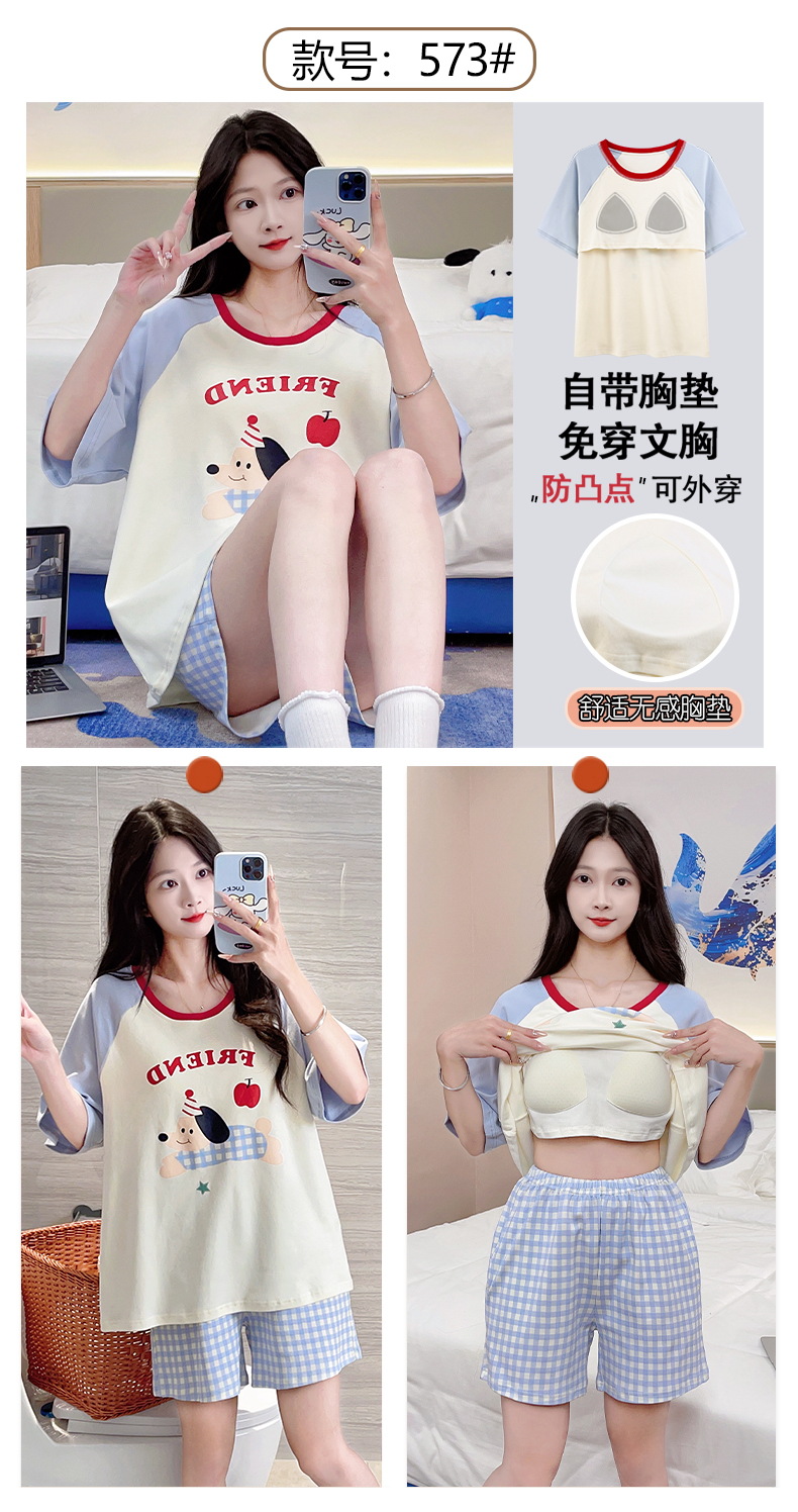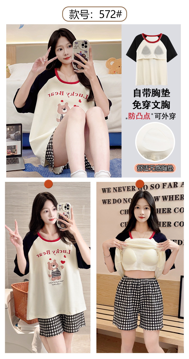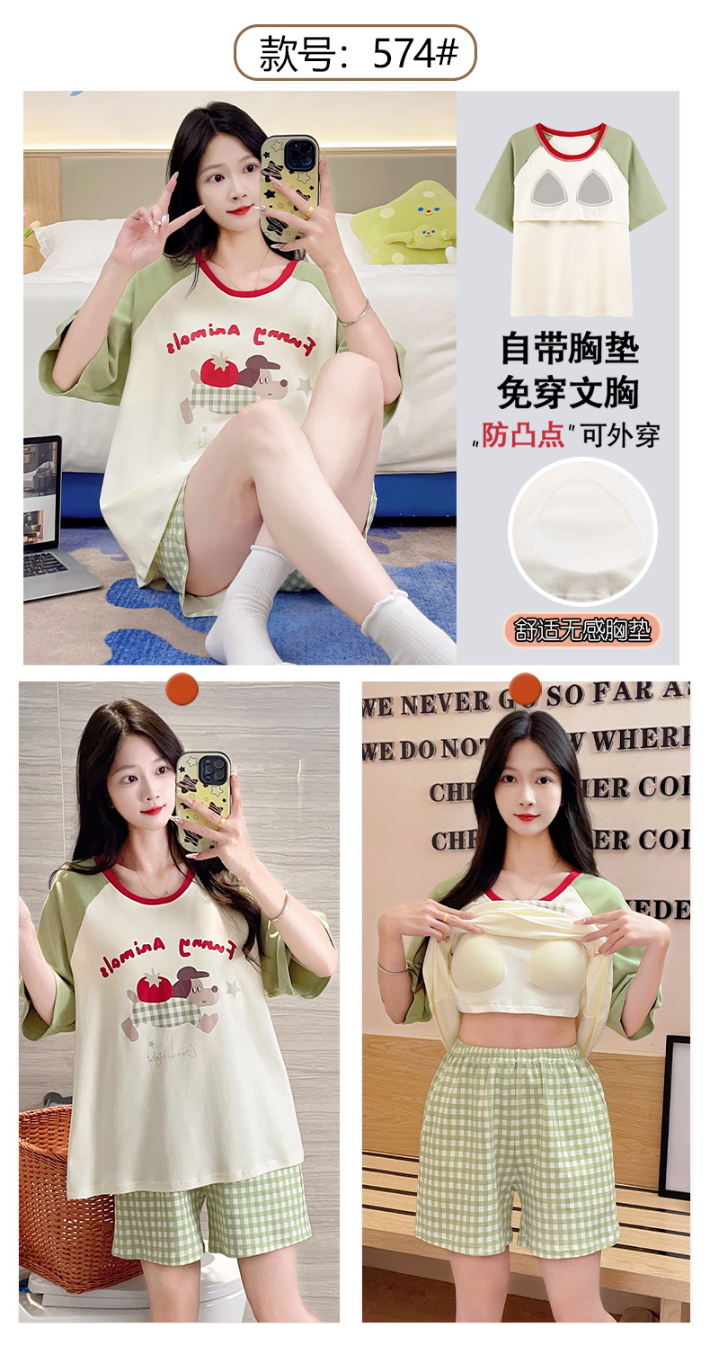 자립형 가슴 패드 잠옷 여성 반소매 브래지어없는 원피스 여름 안티 범프 중학교 학생들의 세트 입고 큰 아이들스토어 가기