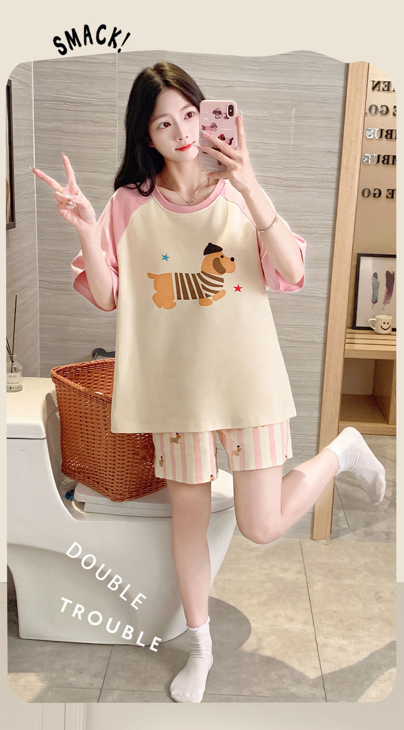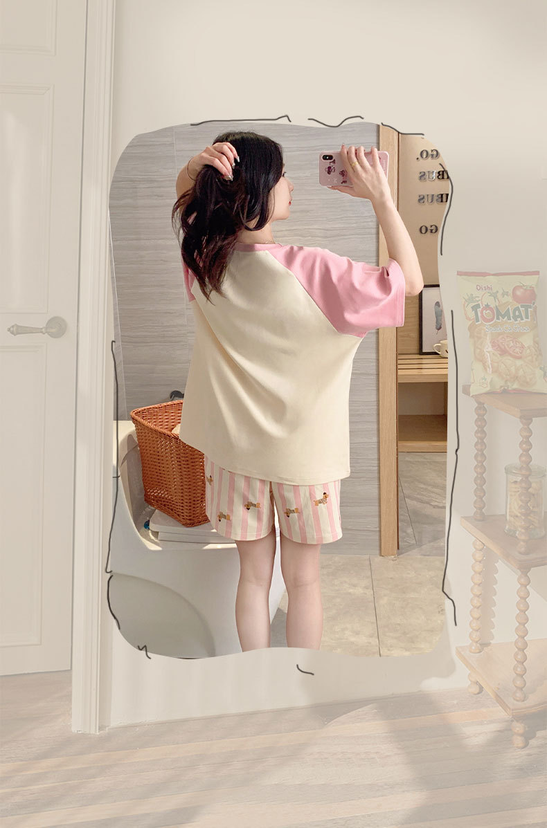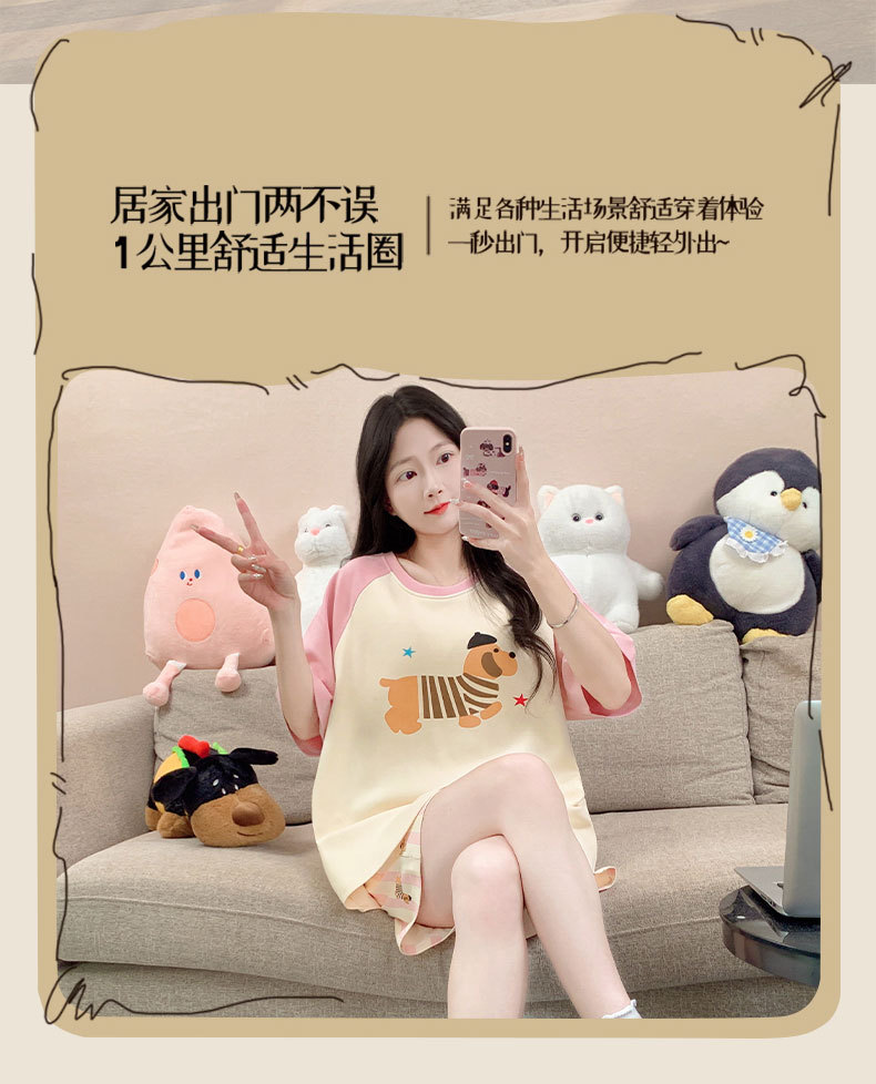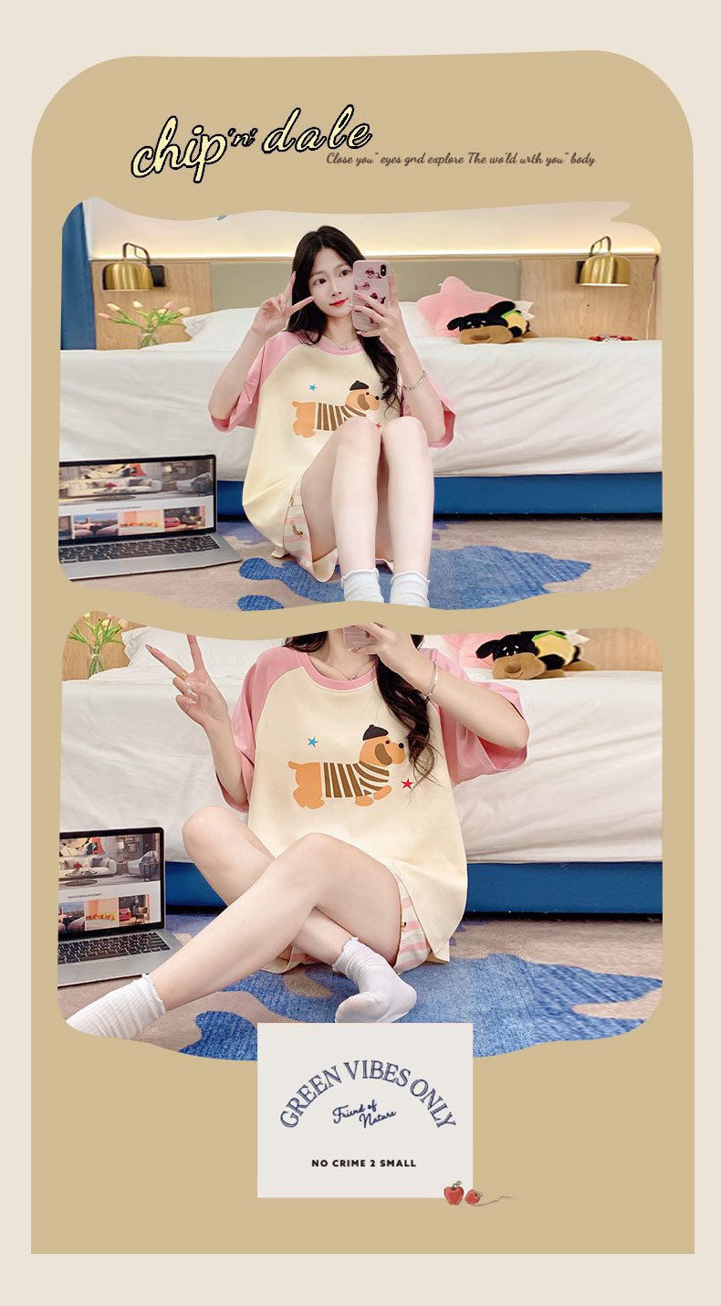 자립형 가슴 패드 잠옷 여성 반소매 브래지어없는 원피스 여름 안티 범프 중학교 학생들의 세트 입고 큰 아이들스토어 가기