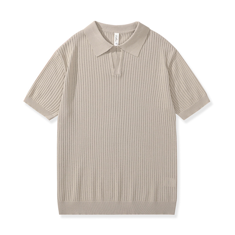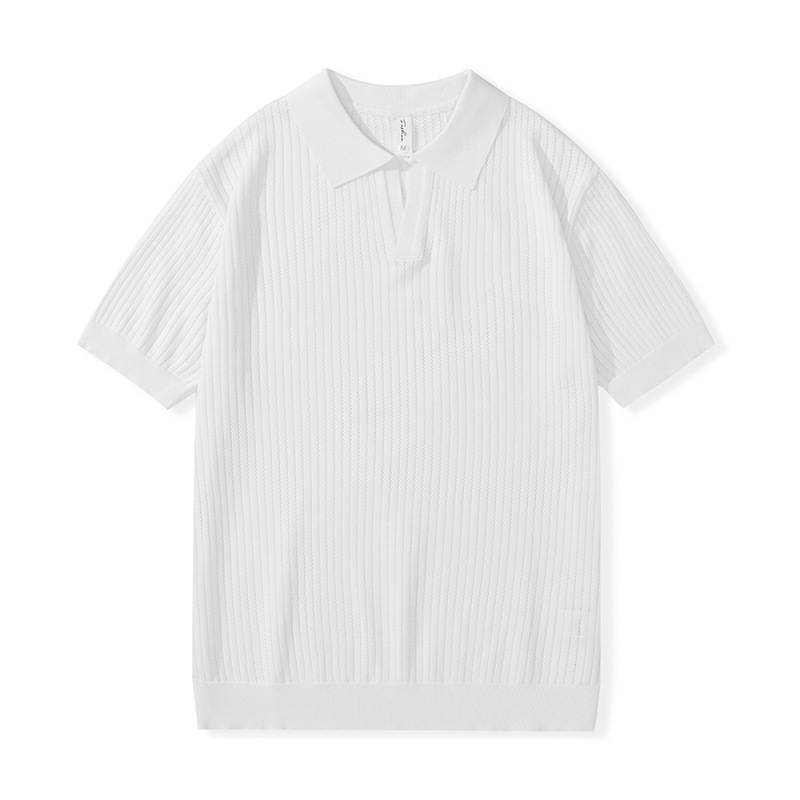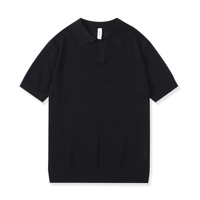 Muqiu 남성복 | 여름 얇은 얼음 실크 시원한 반팔 폴로 셔츠 남성 갈매기 칼라 시원한 니트 티셔츠 탑스토어 가기