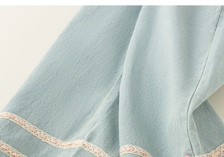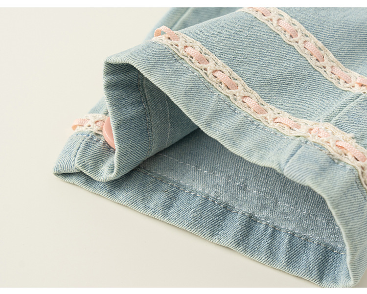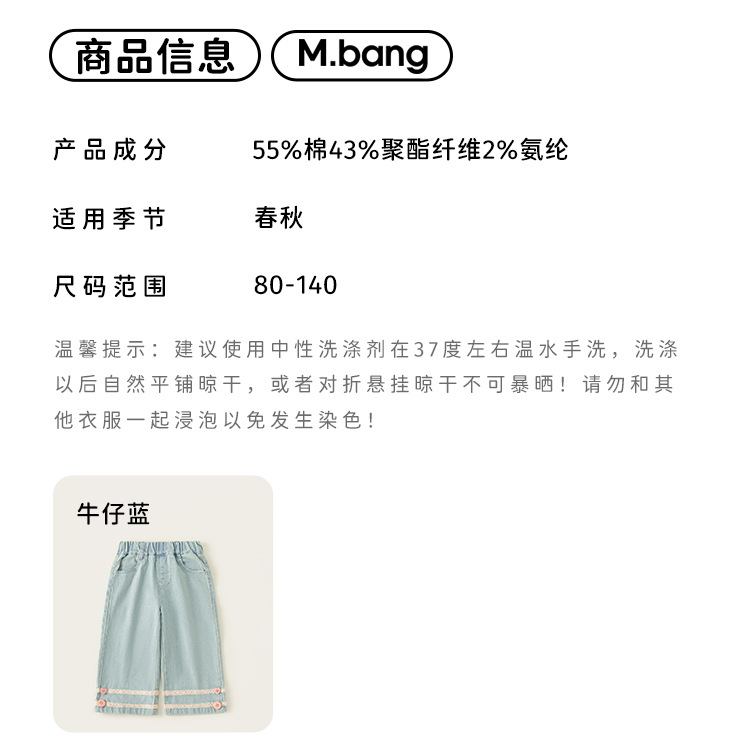 유바오 아동복 봄 착용 어린이 바지 여아 느슨한 넓은 다리 바지 어린이 서양식 리본 소녀 캐주얼 청바지스토어 가기