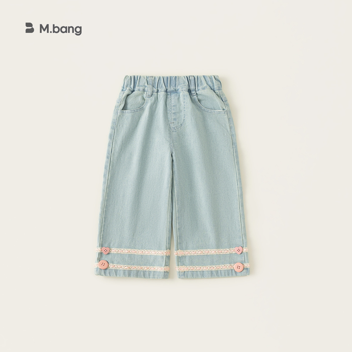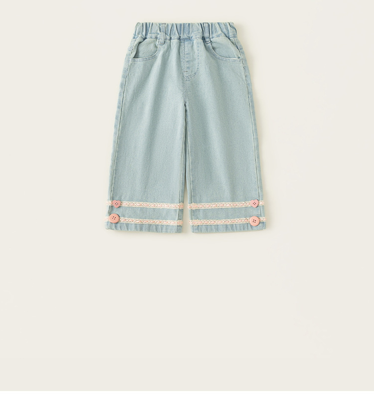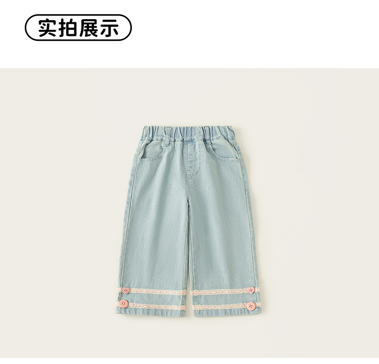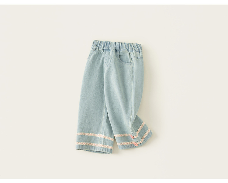 유바오 아동복 봄 착용 어린이 바지 여아 느슨한 넓은 다리 바지 어린이 서양식 리본 소녀 캐주얼 청바지