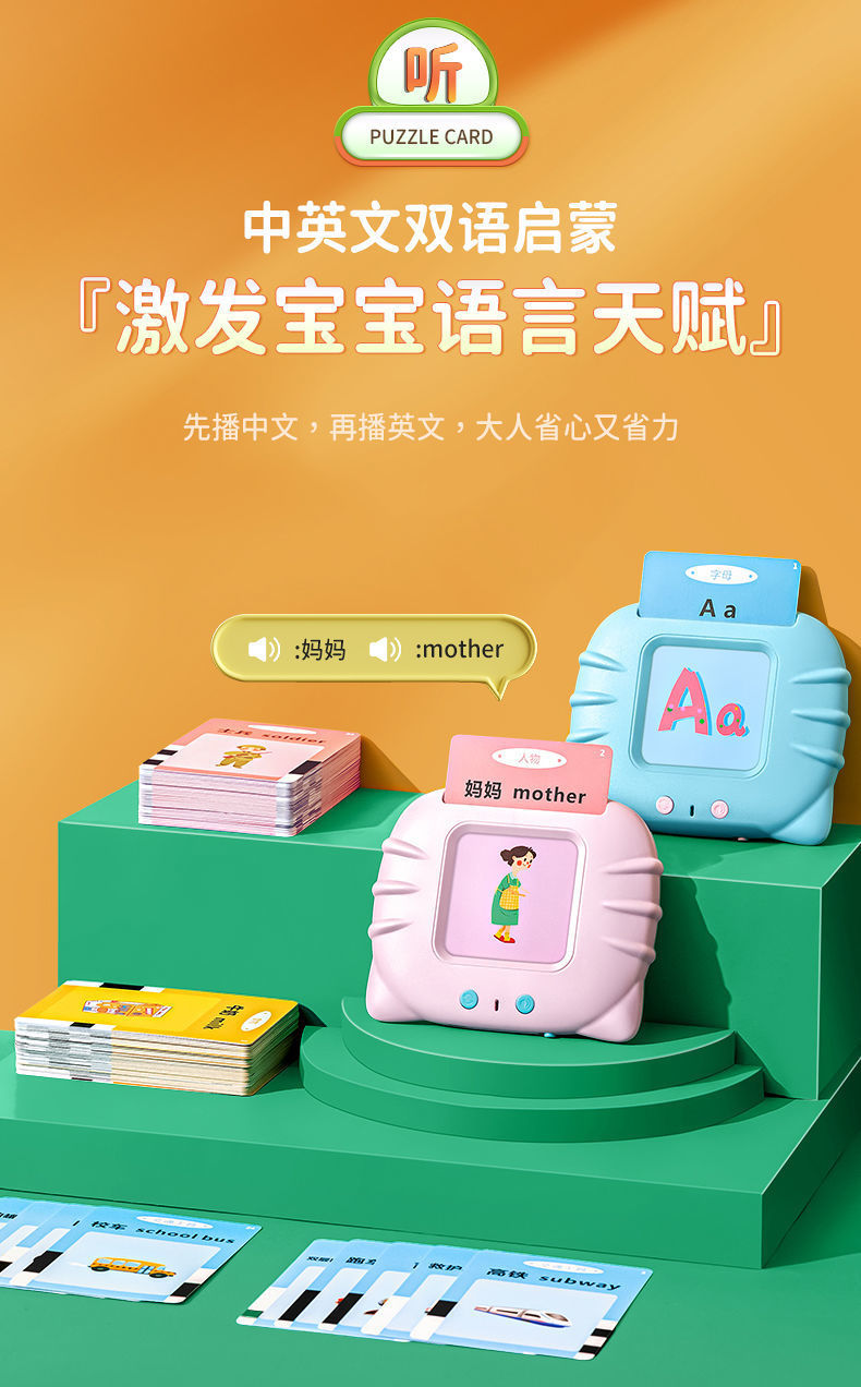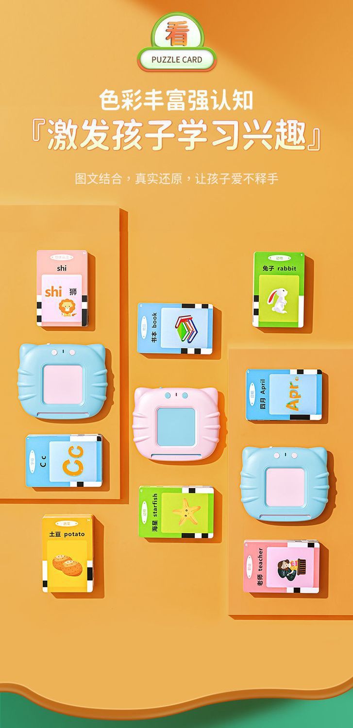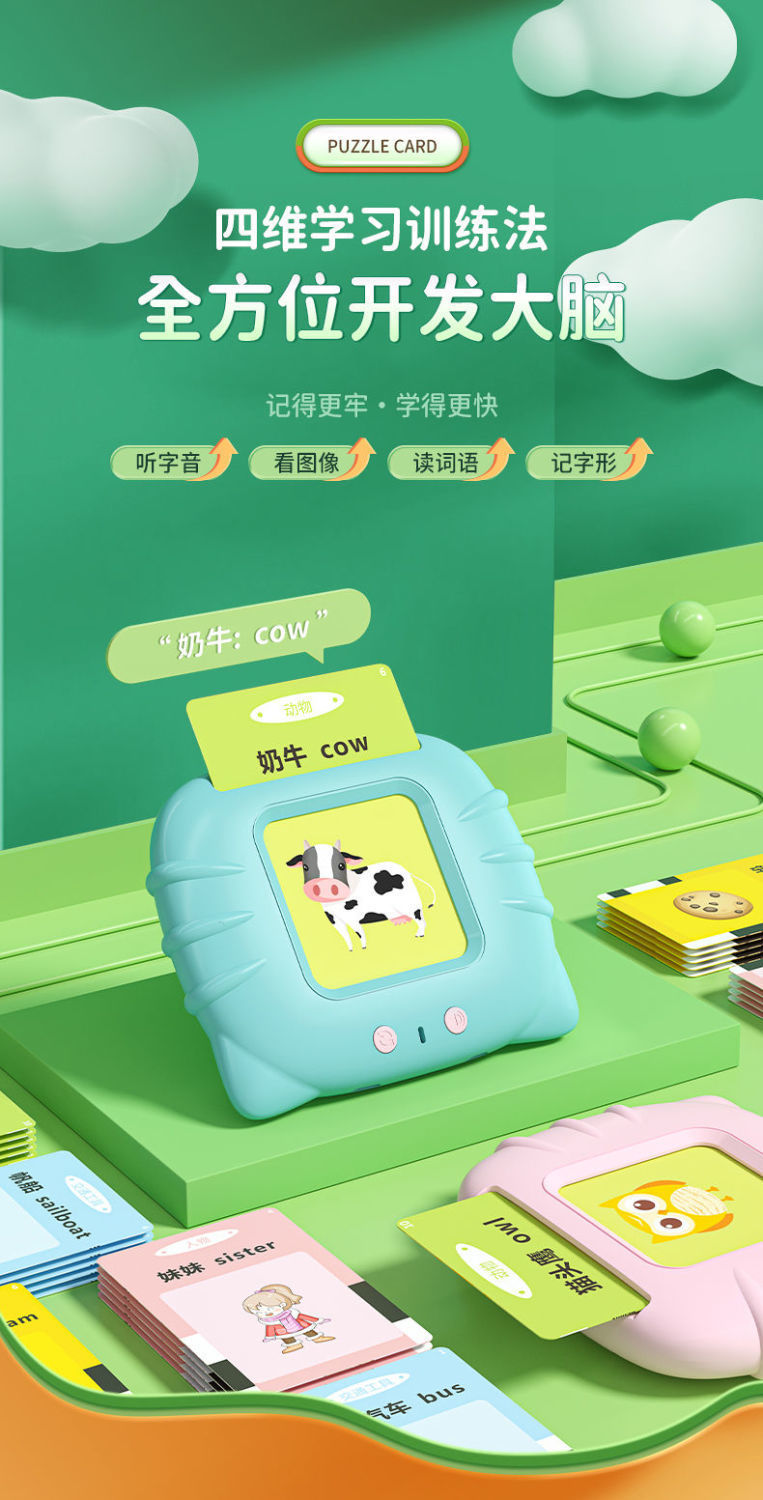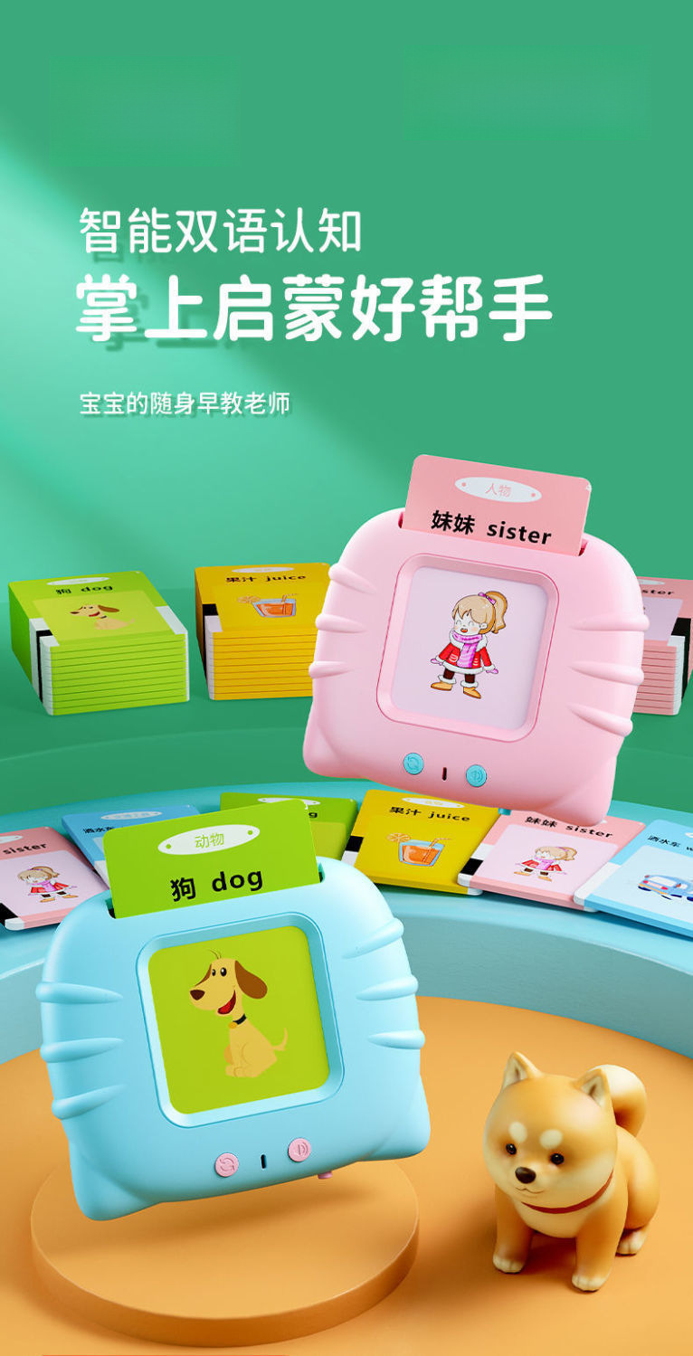카드 조기 교육 기계-어린 아이들, 소년 소녀 장난감을위한 이중 언어 문맹 퇴치 카드 계몽 유물스토어 가기