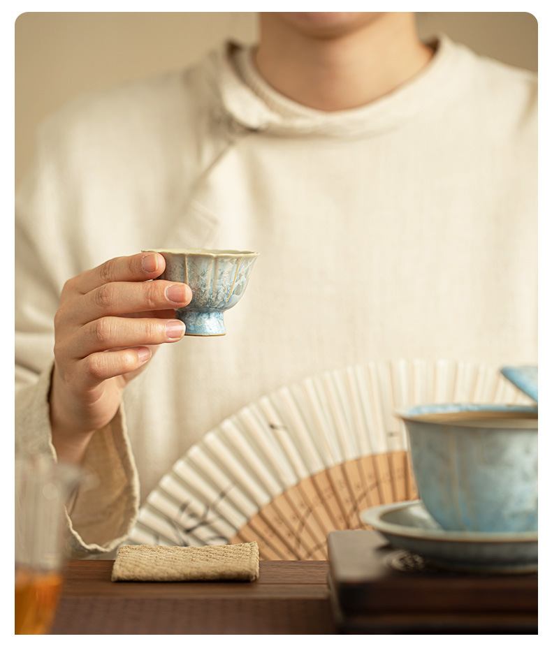 Jingdezhen 크리스탈 가마 변화 꽃 입 차 컵 세라믹 차 세트 마스터 컵 게스트 컵 차 시음 컵 쿨 쿵푸 차 세트스토어 가기