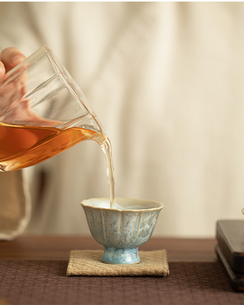Jingdezhen 크리스탈 가마 변화 꽃 입 차 컵 세라믹 차 세트 마스터 컵 게스트 컵 차 시음 컵 쿨 쿵푸 차 세트