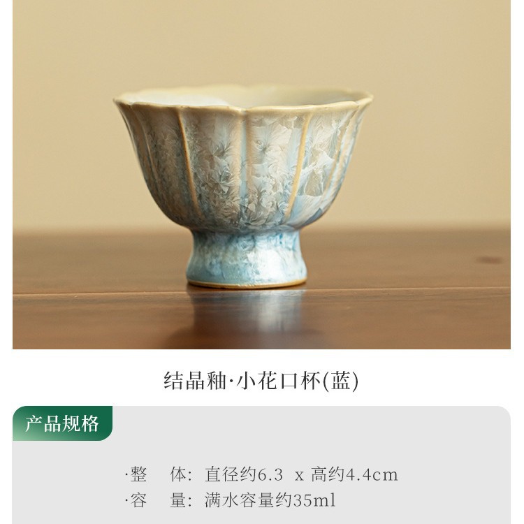 • 크리스탈 유약-작은 꽃 입 컵 (파란색)