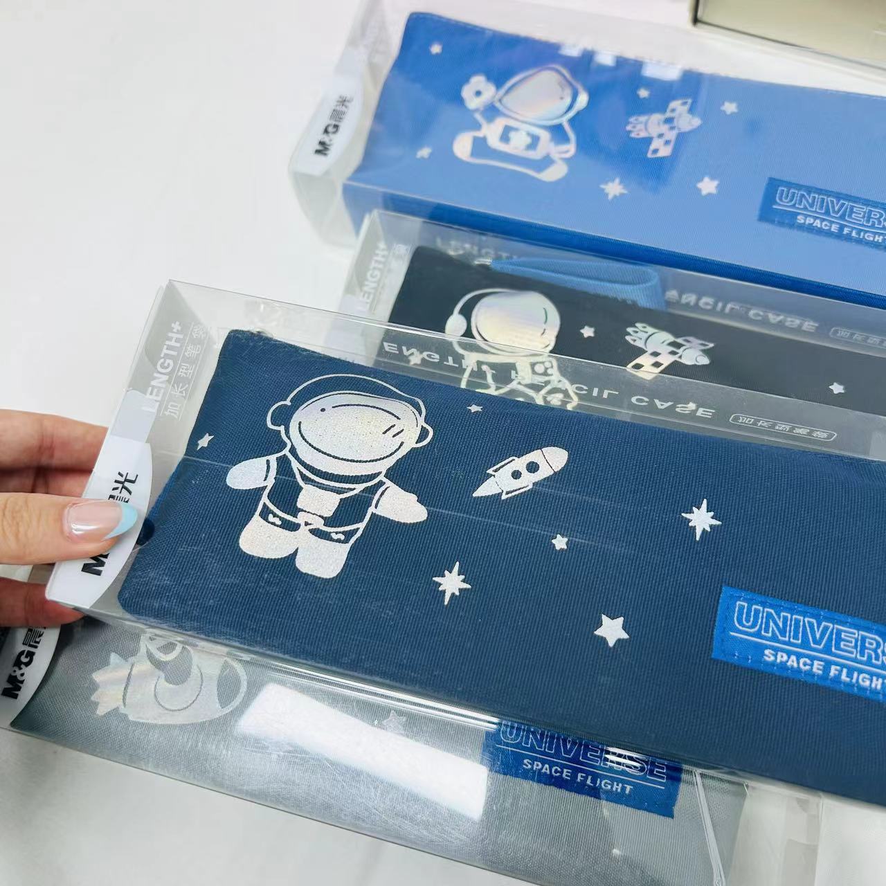 아침 빛은 우주에 거꾸로 된 사다리꼴 연필 케이스 남성 우주 비행사 문구 가방 만화 대용량 더러운 문구 연필 케이스