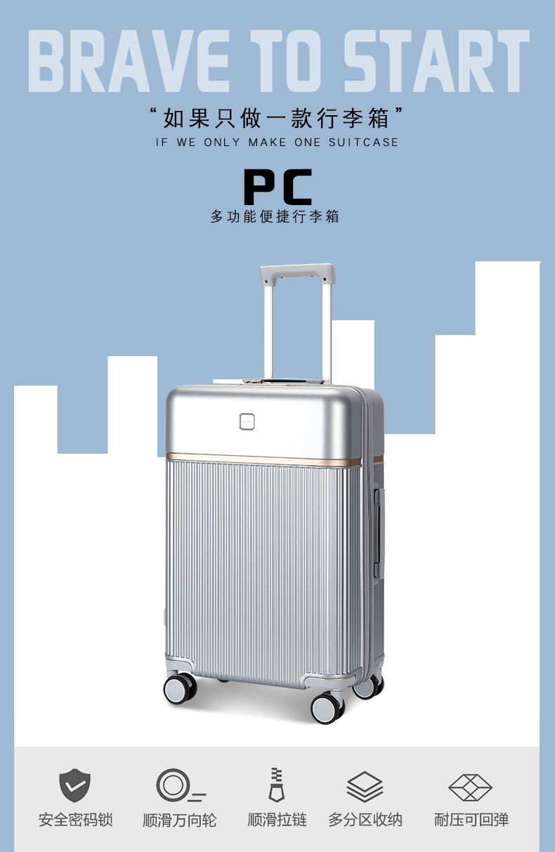휴대폰 홀더가 있는 다기능 대용량 크로스보더 신형 탑승 수하물 PP 트롤리 케이스 3종 세트 맞춤형스토어 가기