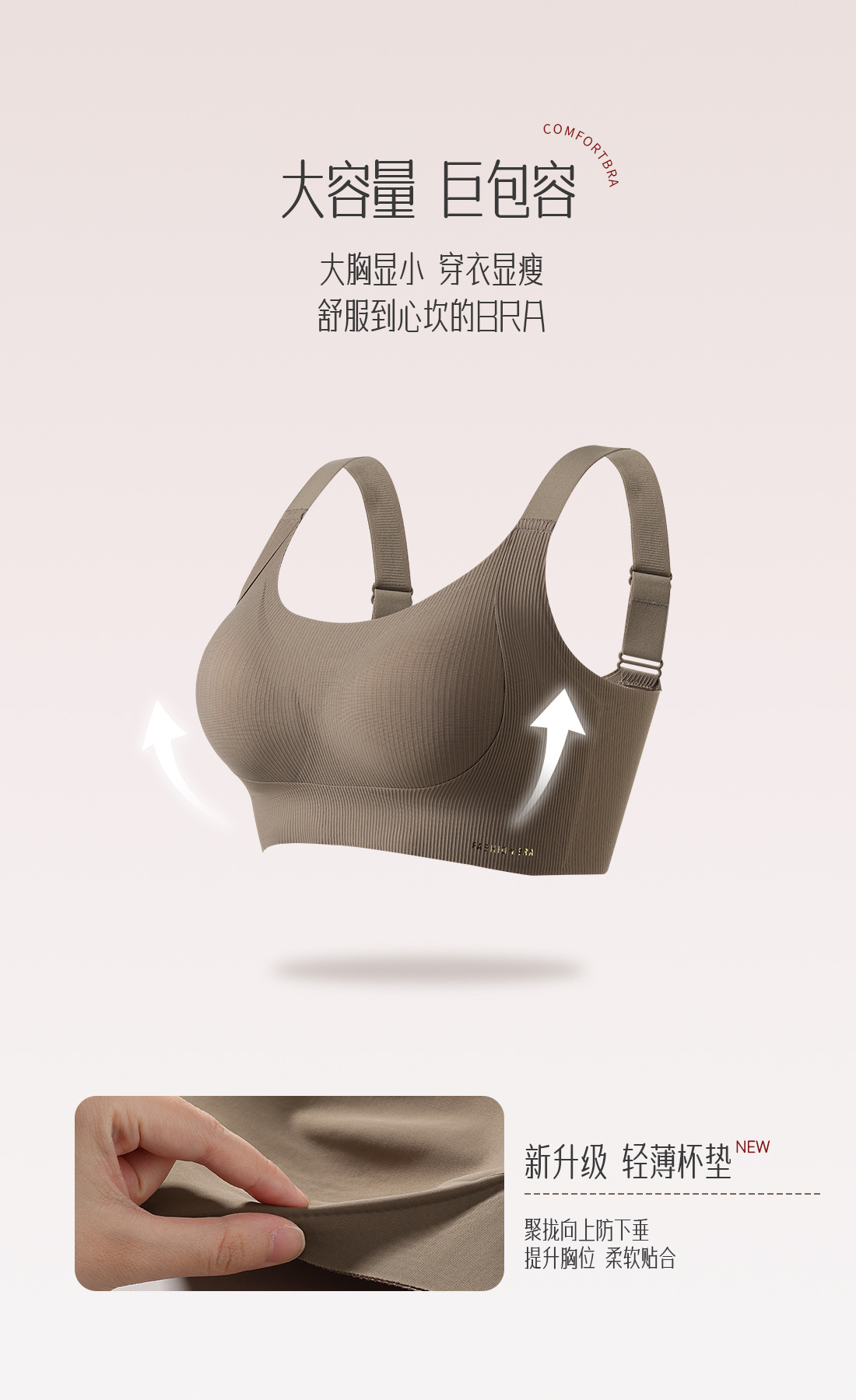 Tracless 속옷 여성의 작은 가슴 푸쉬 업 패러 머리 프리 소프트 지원 처지 방지 편안한 스포츠 브라