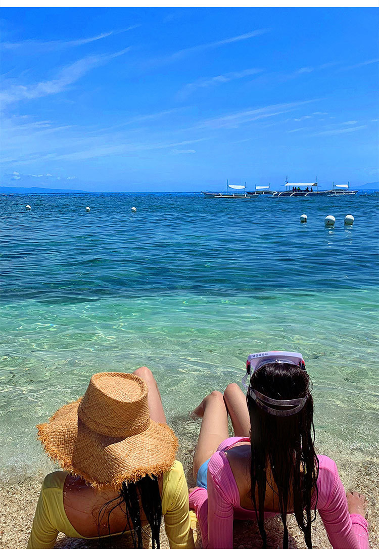 신선하고 달콤한 소녀의 슬림 핏 슬리밍 선 스크린 긴팔 보수적 인 높은 허리 배꼽 여성용 슬리밍 스플릿 수영복스토어 가기