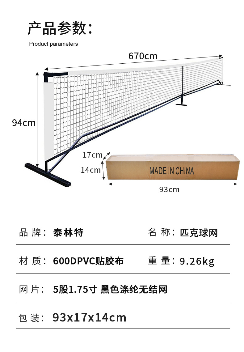 • 피클볼 네트--블랙(바퀴 베이스 없음)