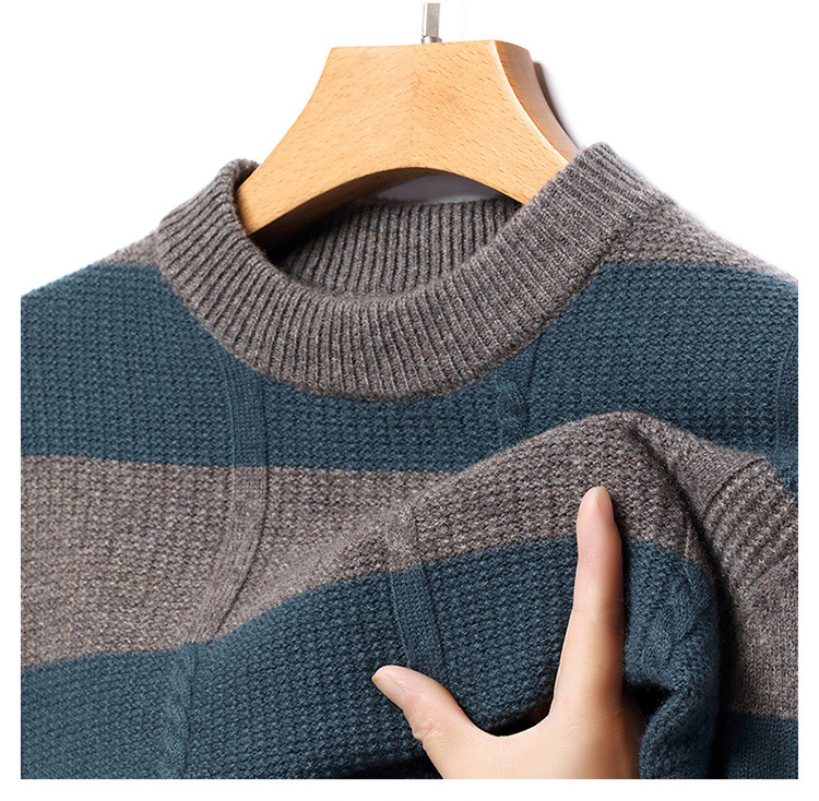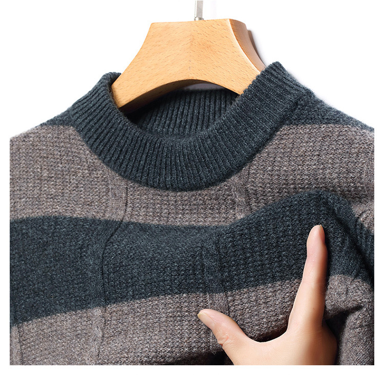 양모 스웨터 남자 크루 넥 터틀넥 가을과 겨울 스트라이프 컬러 매칭 긴 소매 남성베이스 셔츠 남성용 중년 캐주얼 니트 스웨터스토어 가기