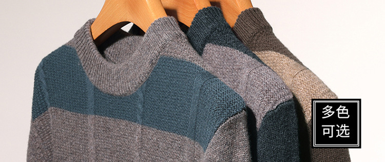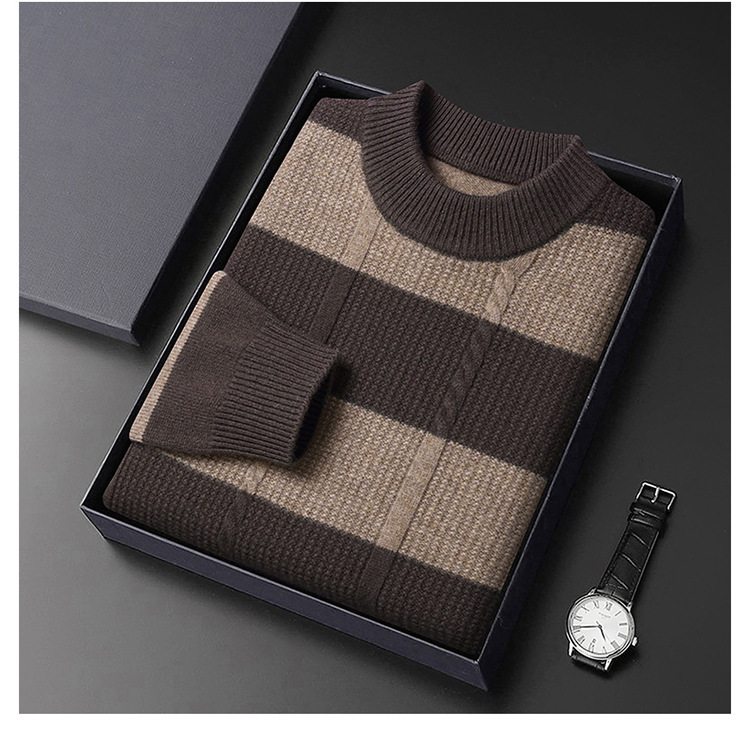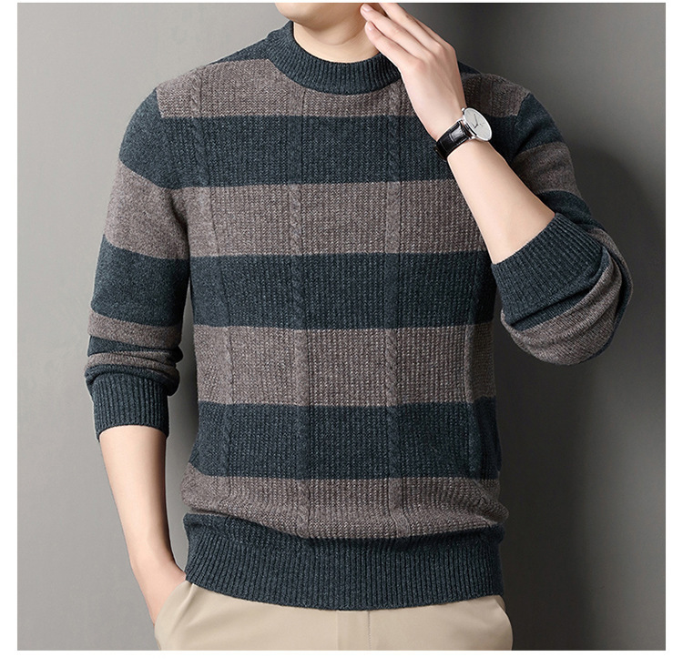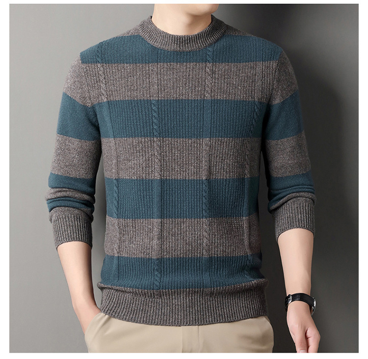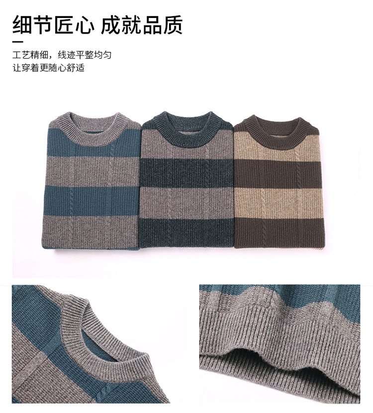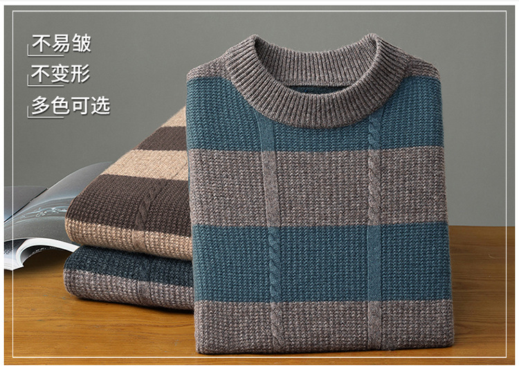 양모 스웨터 남자 크루 넥 터틀넥 가을과 겨울 스트라이프 컬러 매칭 긴 소매 남성베이스 셔츠 남성용 중년 캐주얼 니트 스웨터