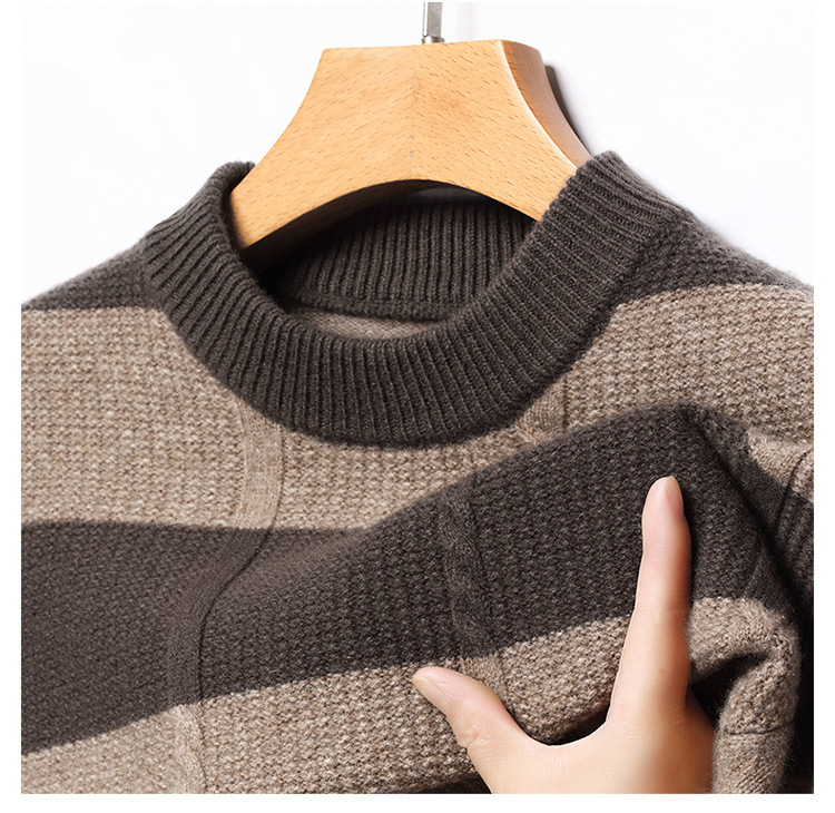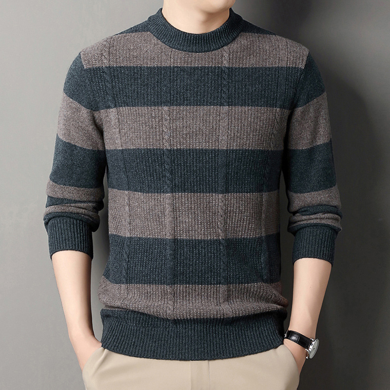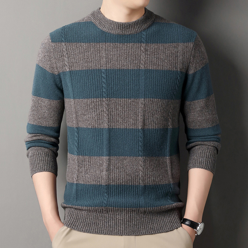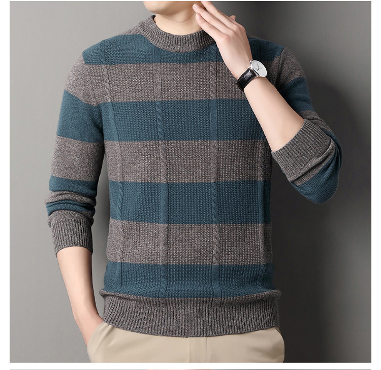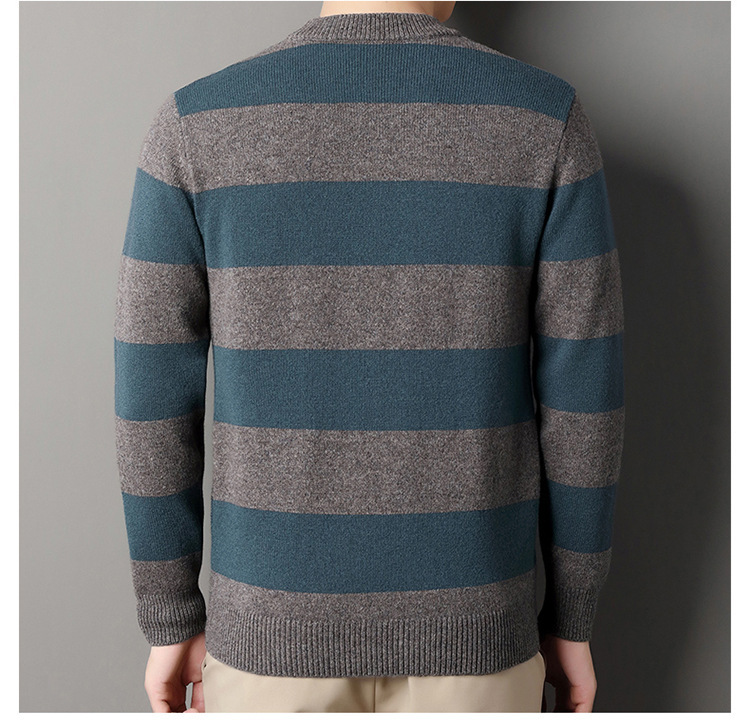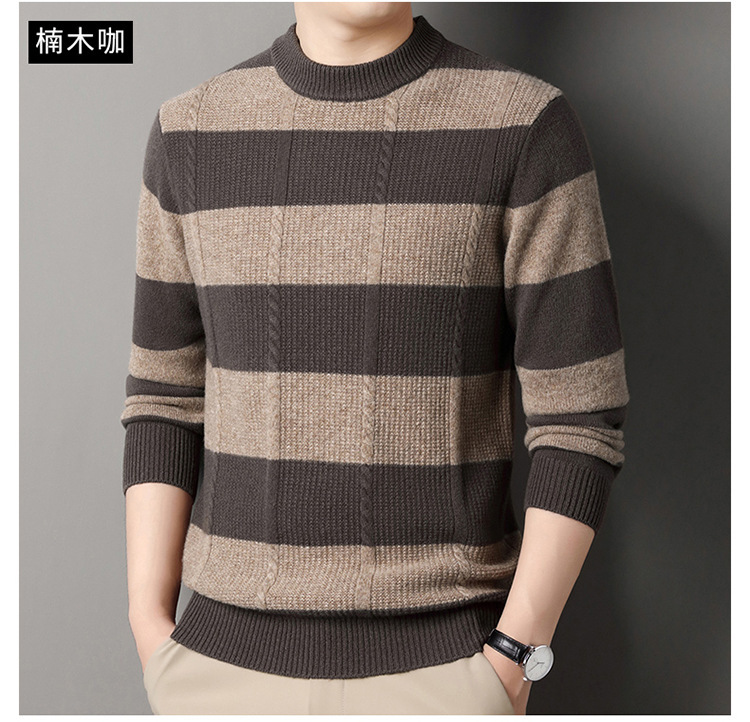 양모 스웨터 남자 크루 넥 터틀넥 가을과 겨울 스트라이프 컬러 매칭 긴 소매 남성베이스 셔츠 남성용 중년 캐주얼 니트 스웨터